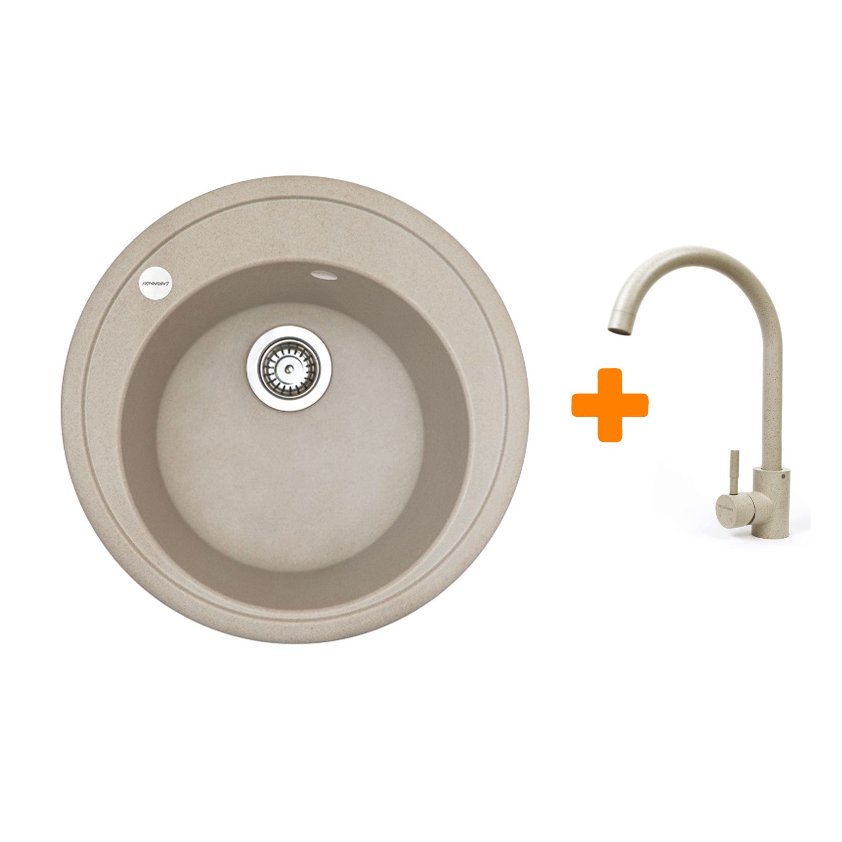 Набір кухонна Adamant Sun, штучний камінь, кругла, без крила, 510x200мм, чаша - 1, врізна, Avena + змішувач