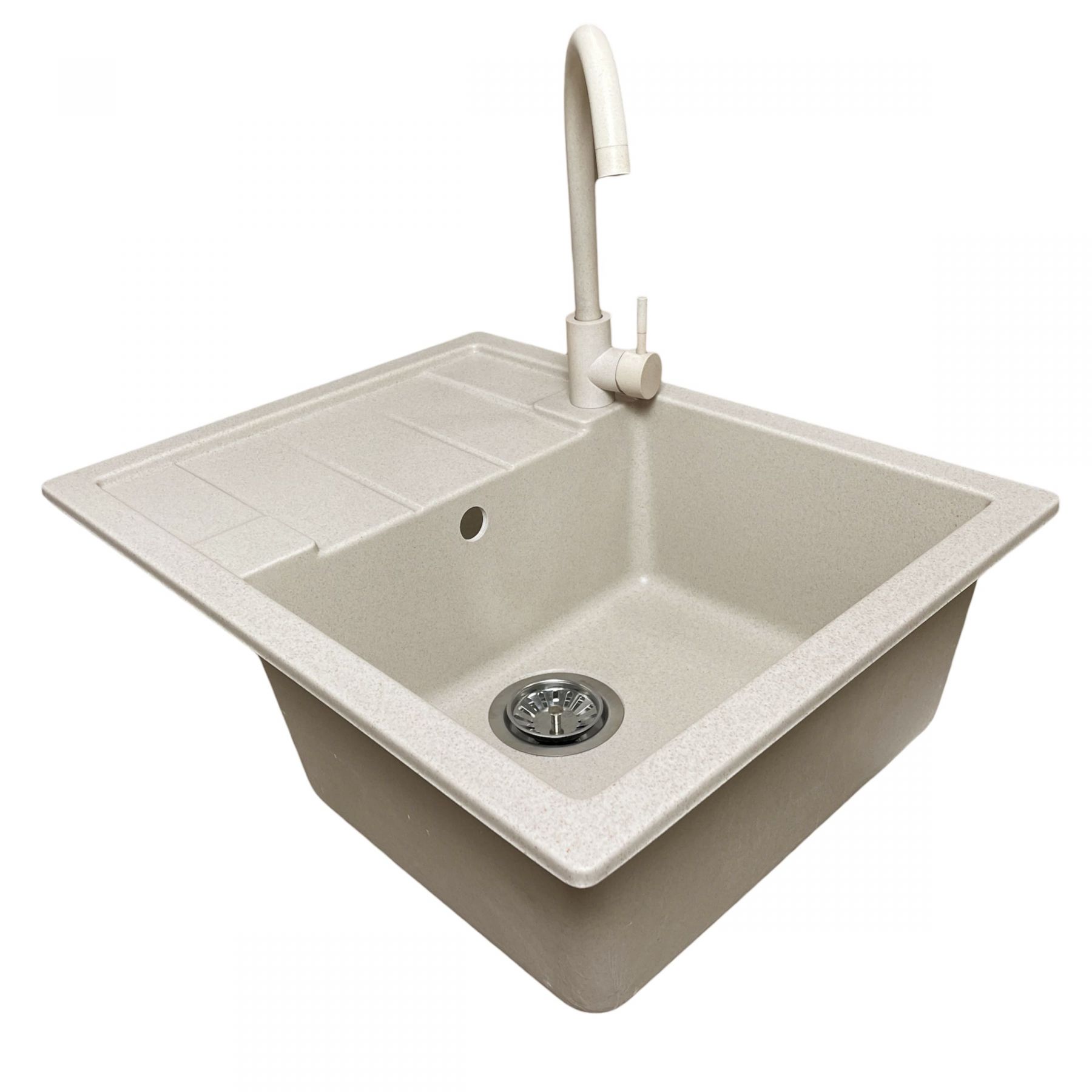 Набір кухонний Adamant Anila, штучний камінь, прямокут., з крилом, 645х495х200мм, чаша - 1, врізна, Avena + змішувач