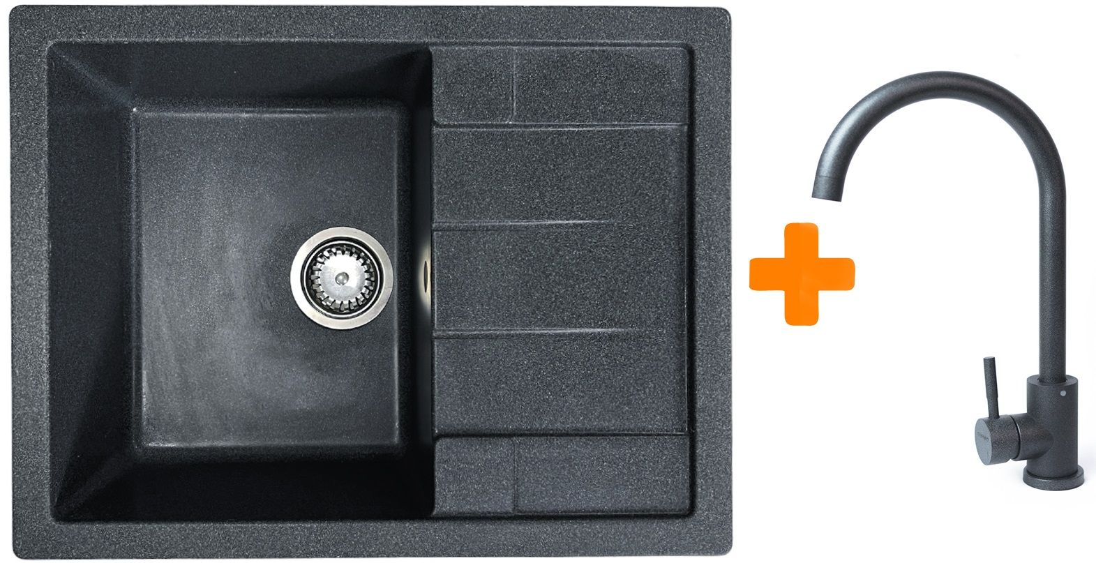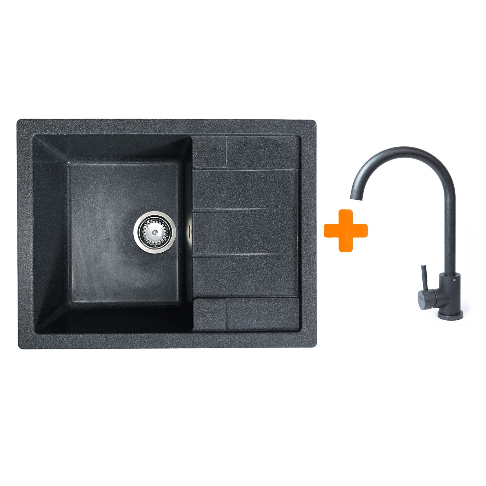 Набір кухонний Adamant Anila, штучний камінь, прямокут., з крилом, 645х495х200мм, чаша - 1, врізна, графіт + змішувач
