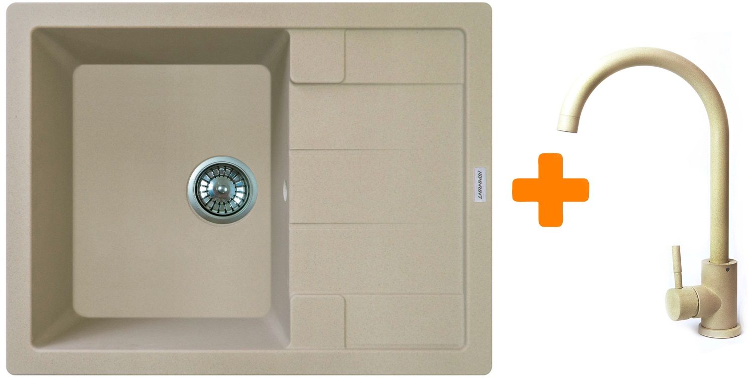 Набір кухонний Adamant Anila, штучний камінь, прямокут., з крилом, 645х495х200мм, чаша - 1, врізна, Сахара + змішувач
