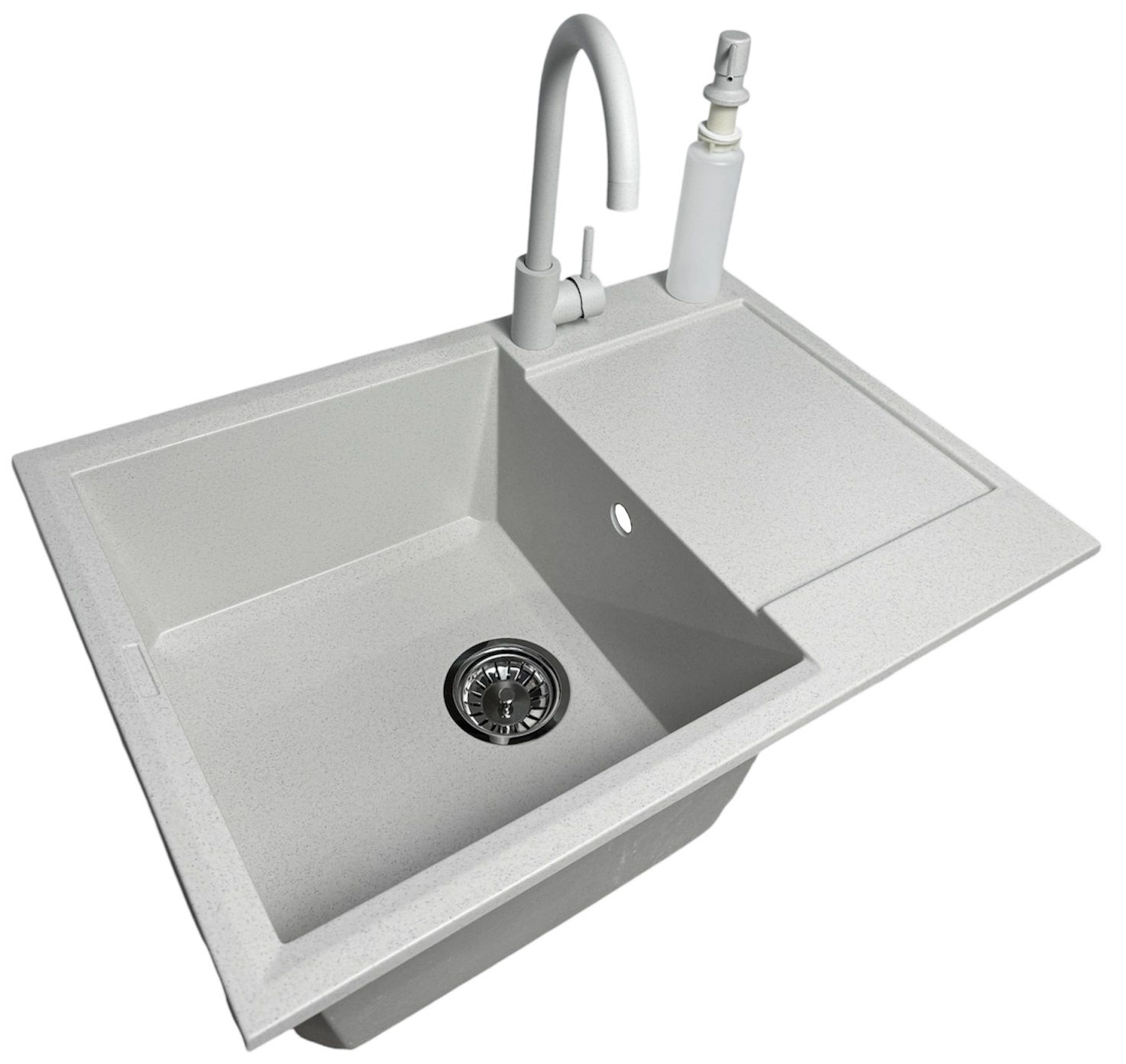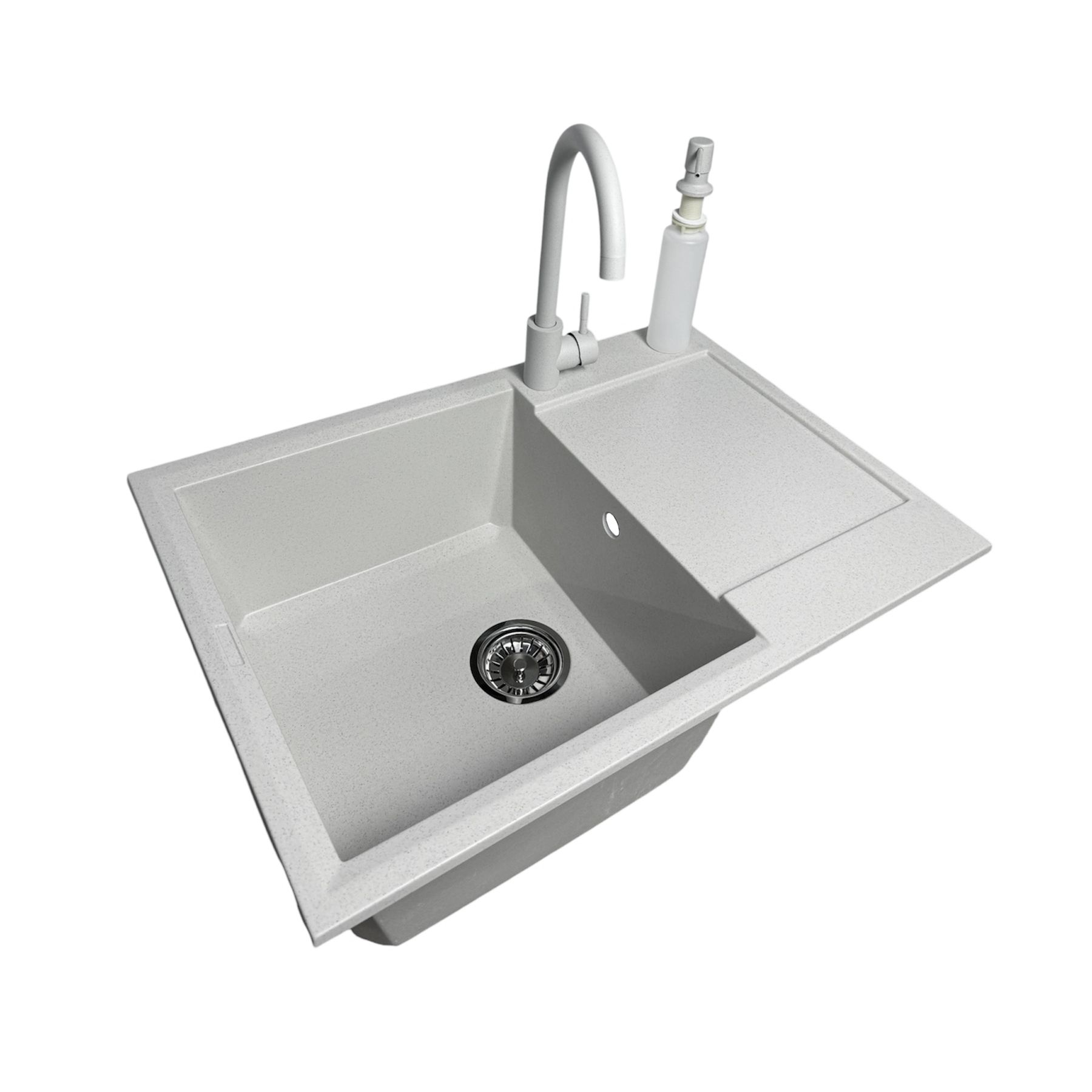Набір кухонний Adamant Horizon Medium, штучний камінь, прямокут., з крилом, 700х500х230мм, чаша - 1, врізна, Old stone + змішувач та дозатор