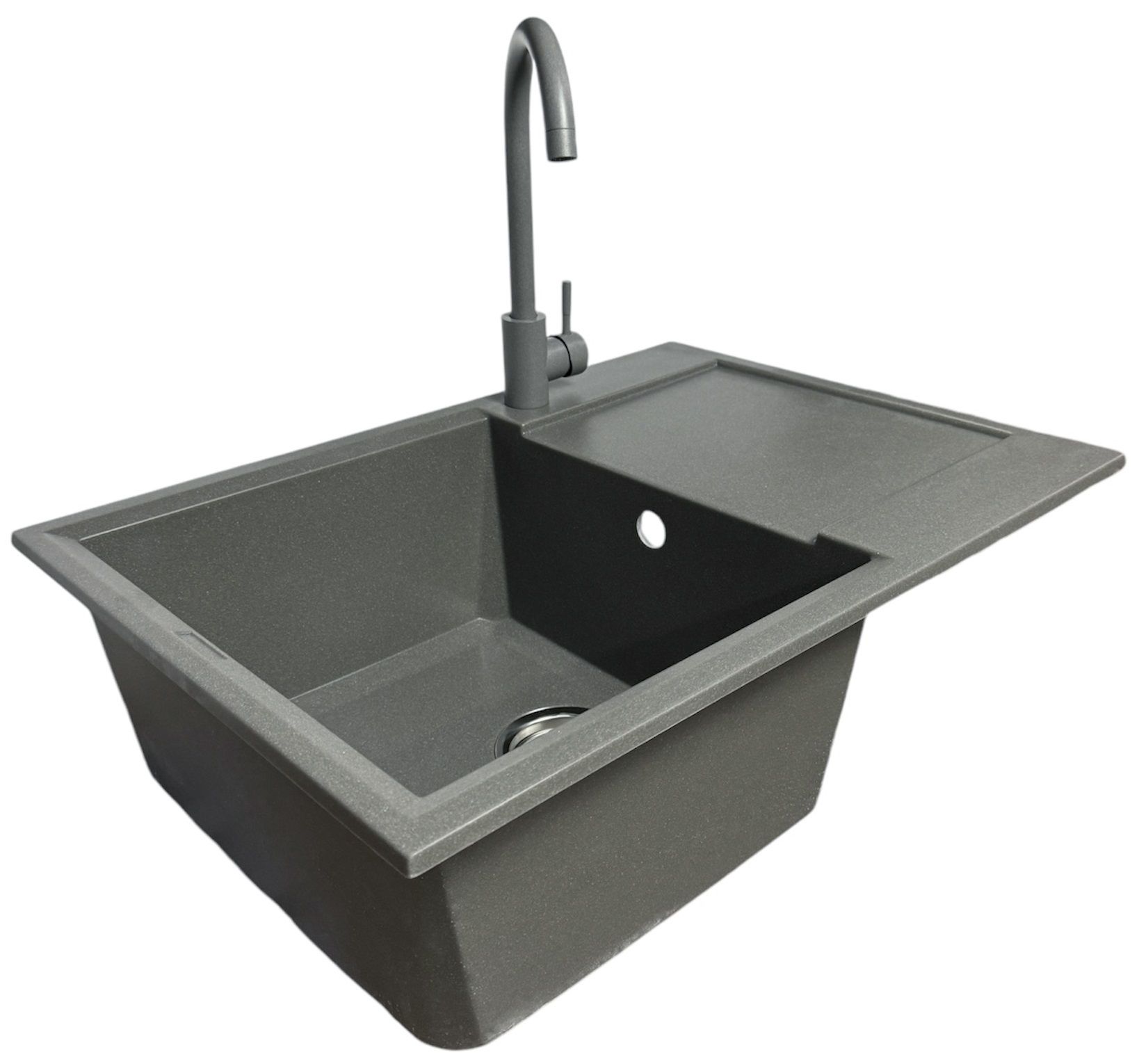 Набір кухонний Adamant Horizon Medium, штучний камінь, прямокут., з крилом, 700х500х230мм, чаша - 1, врізна, сірий + змішувач