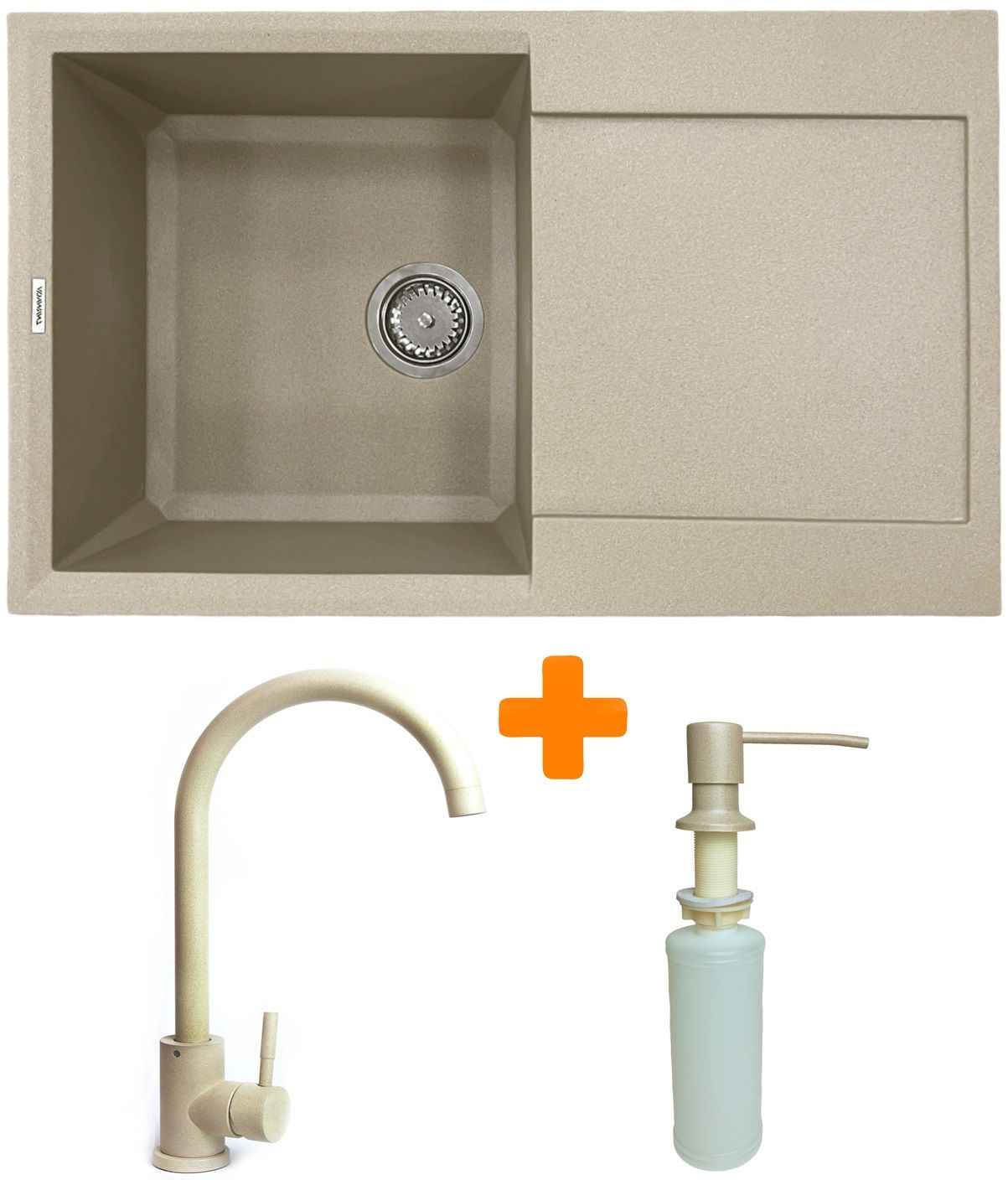 Набір кухонний Adamant Horizon, штучний камінь, прямокут., з крилом, 780х495х230мм, чаша - 1, врізна, Сахара + змішувач та дозатор