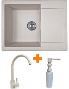 Набір кухонний Adamant Minimal, штучний камінь, прямокут., з крилом, 615х495х200мм, чаша - 1, врізна, Avena + змішувач та дозатор