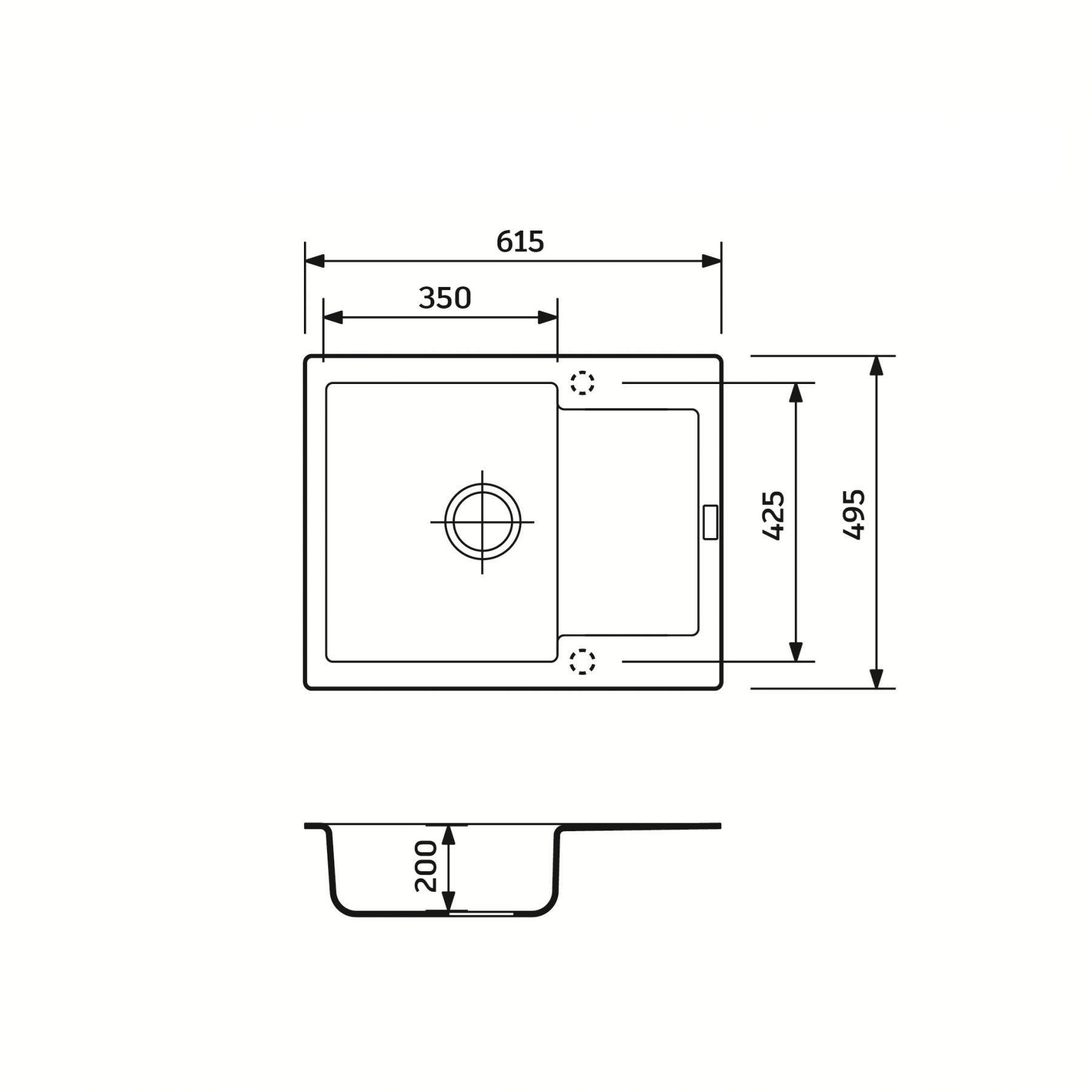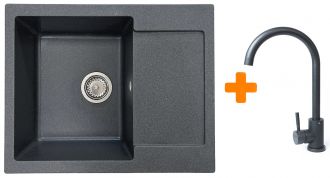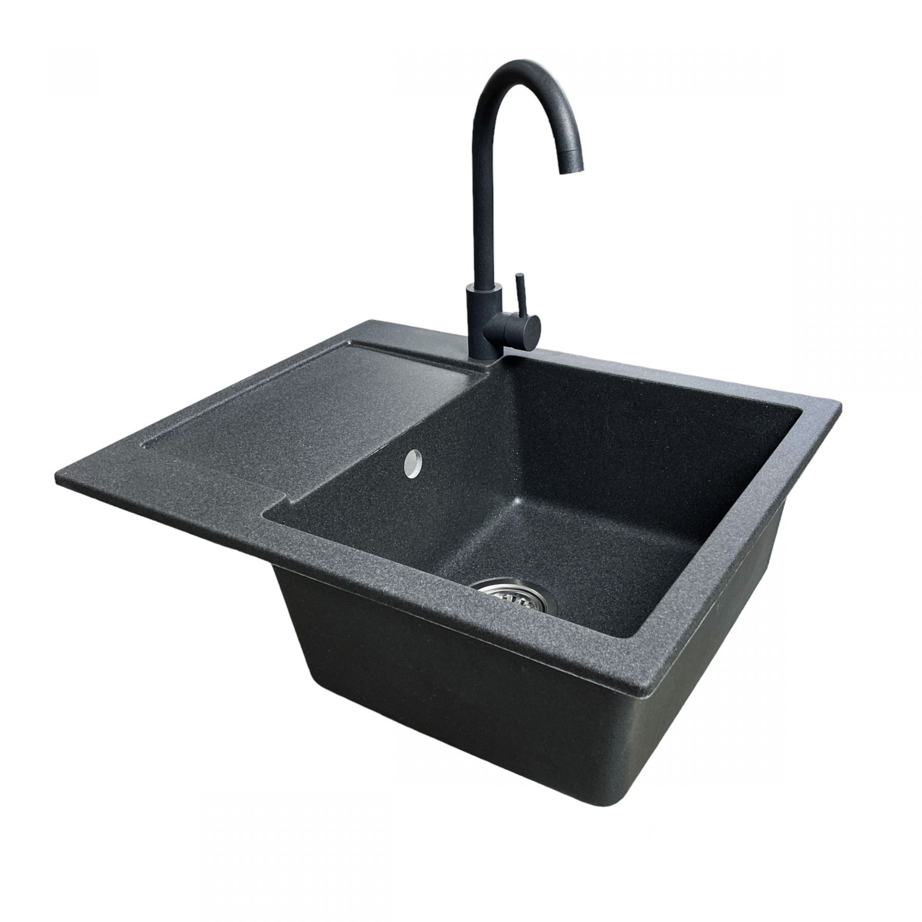 Набір кухонний Adamant Minimal, штучний камінь, прямокут., з крилом, 615х495х200мм, чаша - 1, врізна, графіт + змішувач
