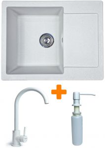 Набір кухонний Adamant Minimal, штучний камінь, прямокут., з крилом, 615х495х200мм, чаша - 1, врізна, Old stone + змішувач та дозатор