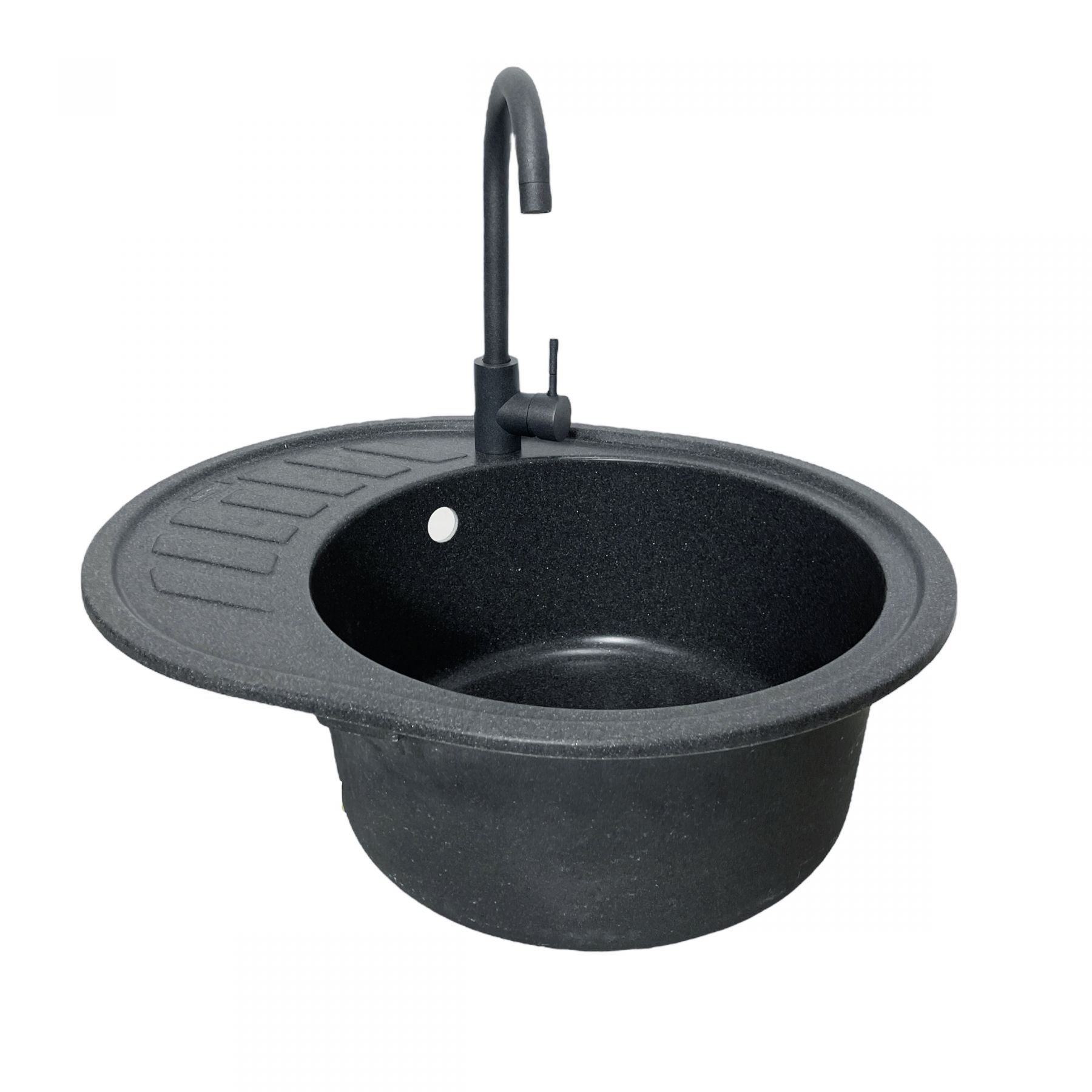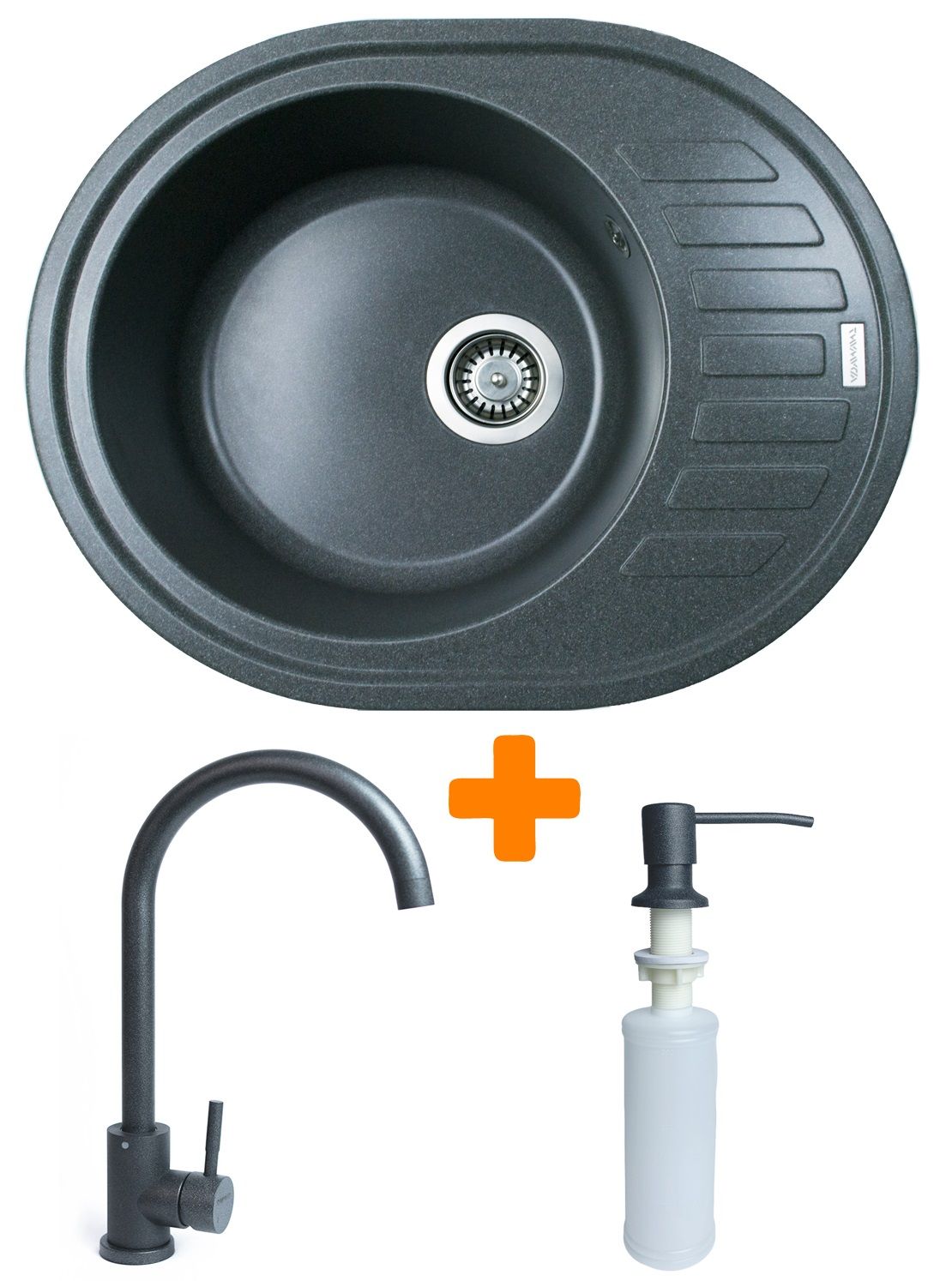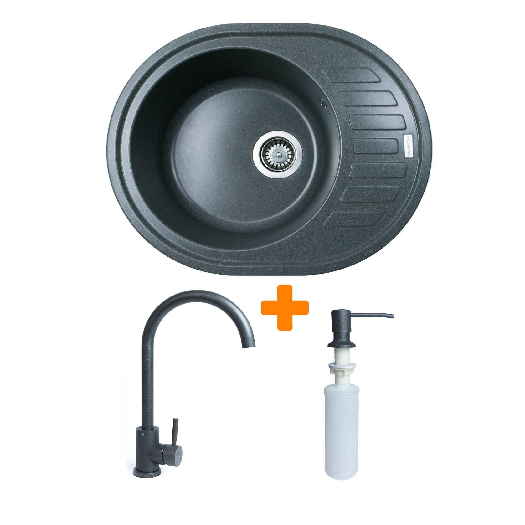 Набір кухонний Adamant Ovum, штучний камінь, овальна, з крилом, 615х495х200мм, чаша - 1, врізна, графіт + змішувач та дозатор