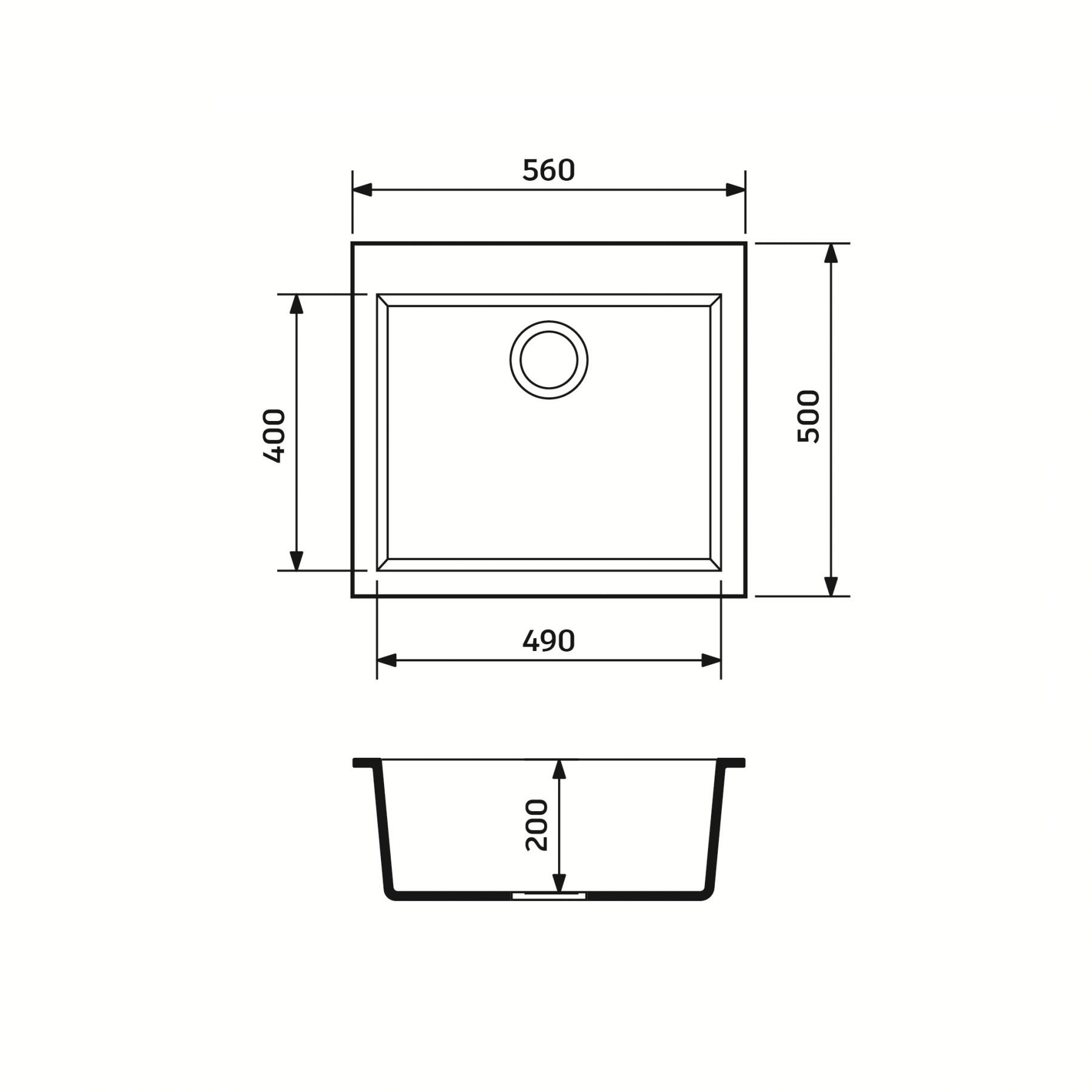 Розміри мийки:560 x 500 x 200
