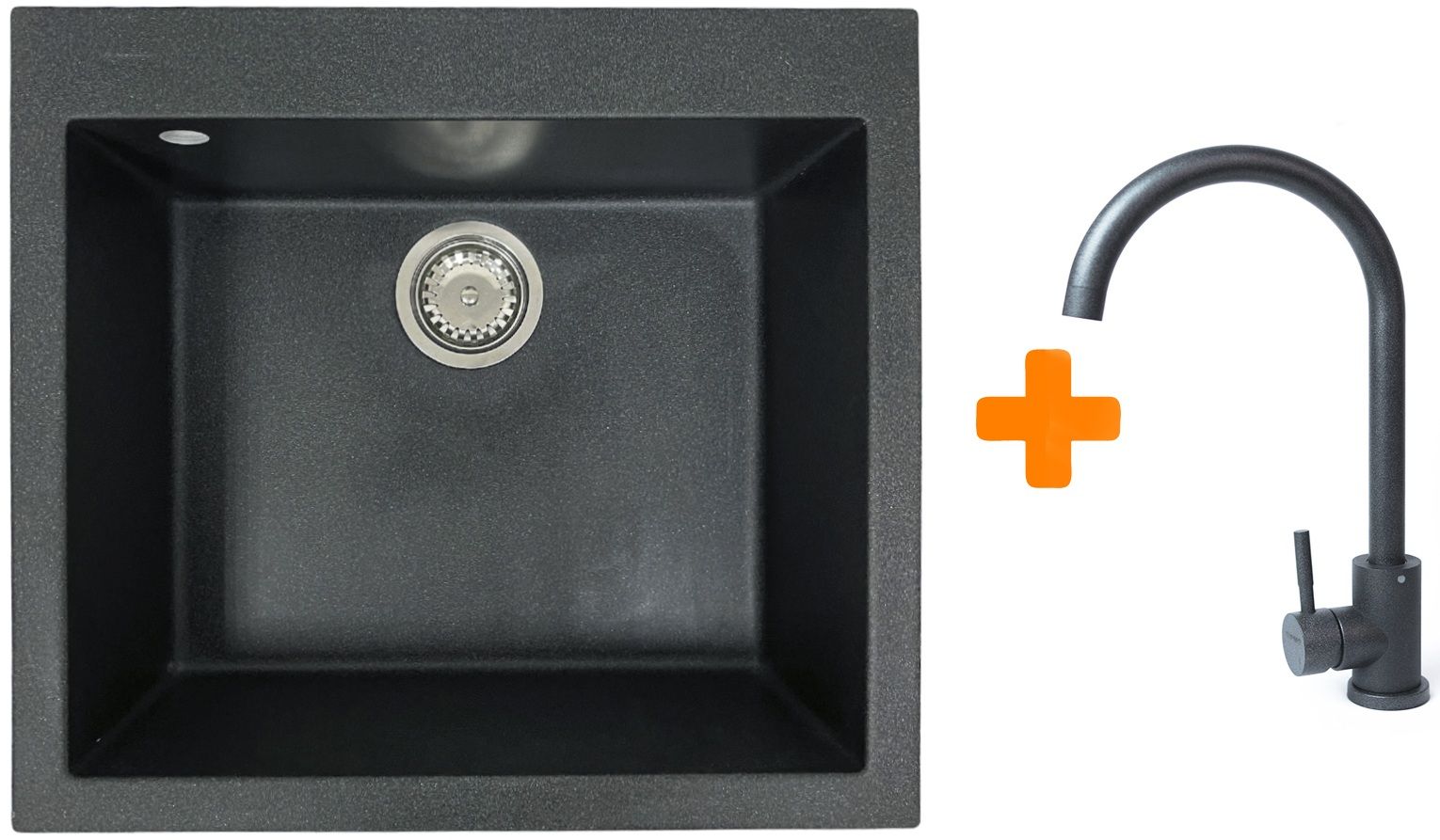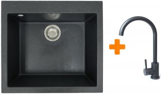 Набір кухонний Adamant Univer, штучний камінь, квадрат, без крила, 560х500х200мм, чаша - 1, врізна, графіт + змішувач