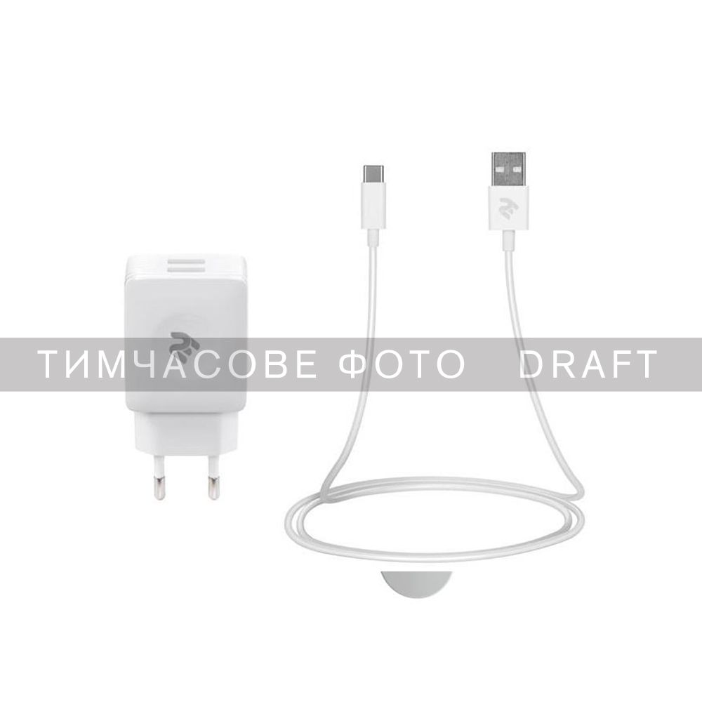 Набір Мережевий ЗП 2E Wall Charger Dual USB-A 2.4A+кабель USB-C White