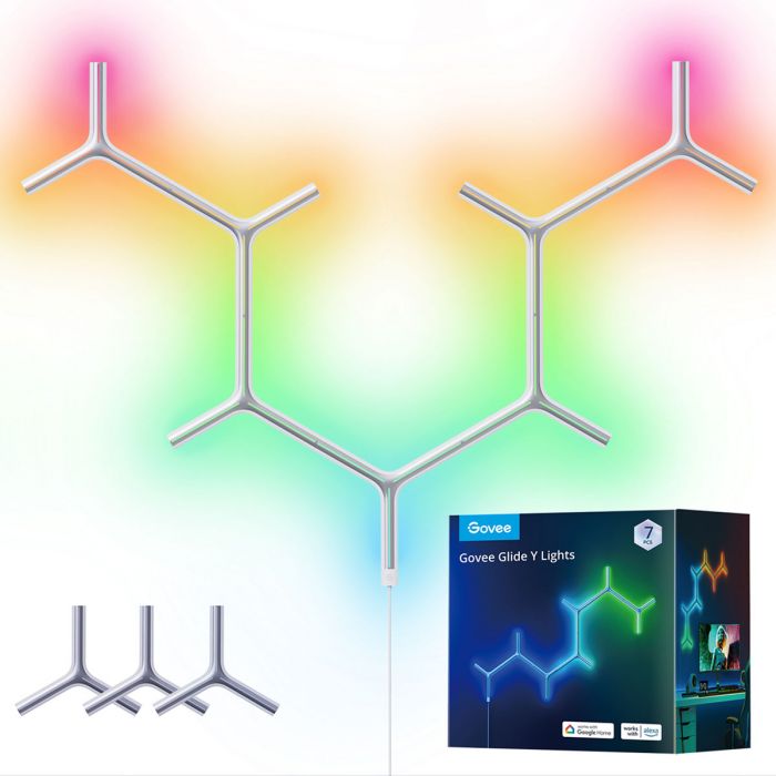Набір настінних світильників Govee H6065 Y Shape Light Panel, 7шт, RGBIC, WI-FI/Bluetooth, білий