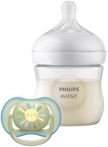 Набір пляшка для годування Avent Natural 125 мл, природній потік + Пустушка Ulta Air 0-6м
