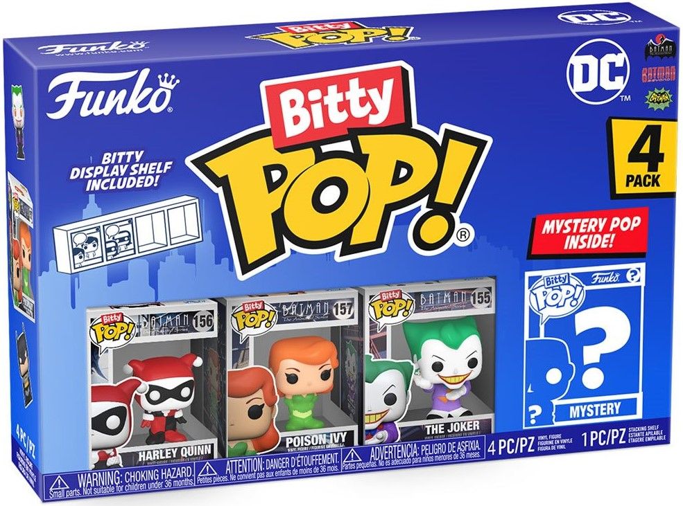 Набір вінілових ігрових фігурок Funko Bitty Pop DC стане чудовим подарунком для любителів фільмів від кінокомпанії DC. Висока деталізація забезпечує максимальну схожість з героєм і дозволяє зробити ігровий процес більш захоплюючим! У наборі 4 вінілові фігурки, серед яких може бути: Бетмен, Робін, Гарлі Квінн, Жінка-кішка, Джокер і таємничий Бітті Поп! Розмір кожної фігурки близько 3 см (в залежності від аксесуарів)