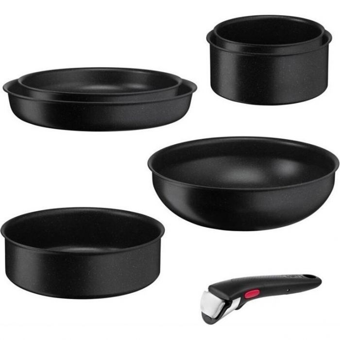 Набір посуду Tefal Ingenio Black Stone, змінна ручка, 7предметів, алюміній, бакеліт, чорний