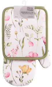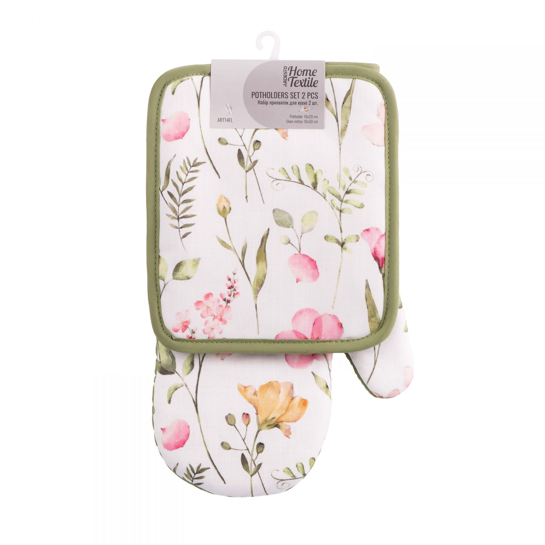 Набір прихваток для кухні ARDESTO Spring flowers 18х20см, 18х30см, 100% поліестер (верх), 100% бавовна (низ), білий