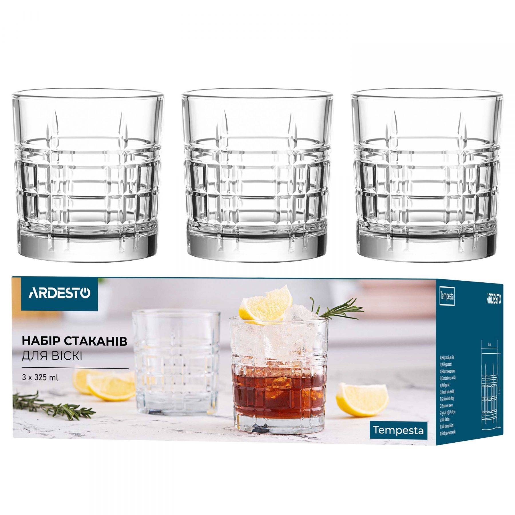 Набір склянок для віскі Ardesto Tempesta 325мл, 3шт, скло, прозорий