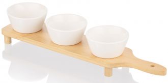 Набір соусників на підставці ARDESTO Midori, 3шт., 110мл, порцеляна, бамбук