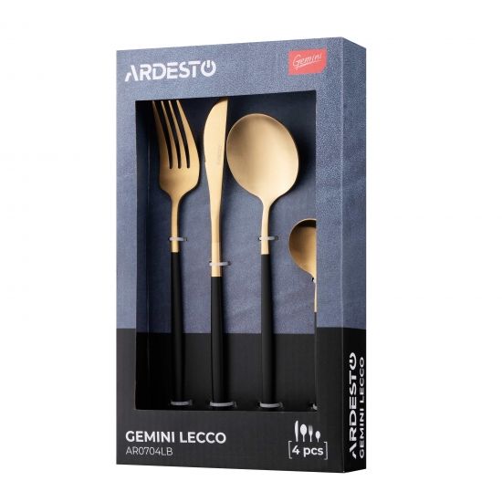 Набір столових приборів Ardesto Gemini Lecco, 4 прибори, нержавіюча сталь, золотисто-чорний