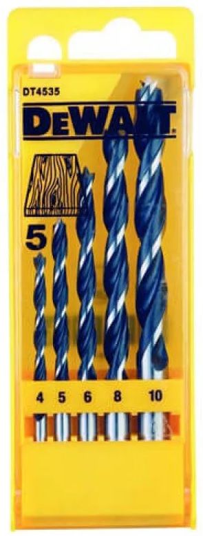 Набір свердел по дереву DeWALT Extreme Impact DT4535 — 5 свердел діаметром від 4 до 10 мм у компактному кейсі. Призначені для роботи з деревиною, сумісні з ударними дрилями та шурупокрутами.