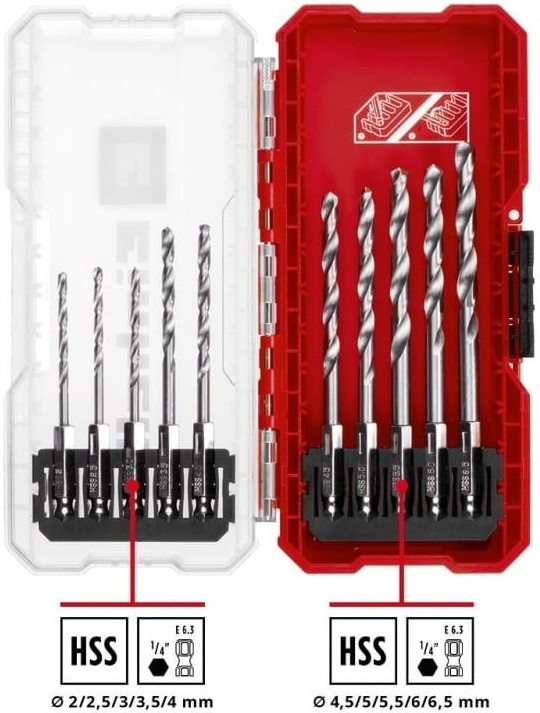Набір свердел Einhell HSS включає 10 елементів діаметром від 2 до 6.5 мм у зручному кейсі. Призначений для точного свердління металу, забезпечуючи чистий і рівний результат.