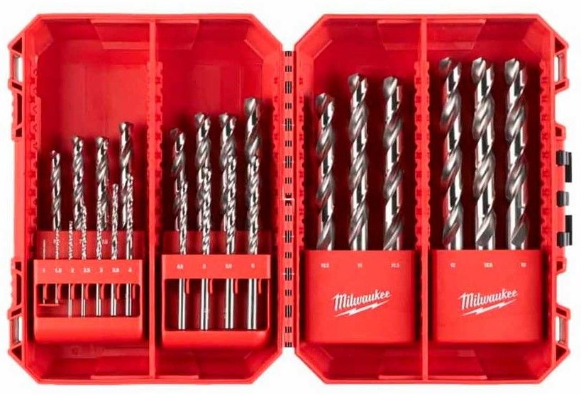 Набір свердел Milwaukee THUNDERWEB включає 25 шліфованих HSS-G свердел діаметром 1–13 мм. Геометрія Thunderweb забезпечує підвищену міцність і довговічність, а заточка 135° Split Point гарантує легкий старт свердління без ковзання.