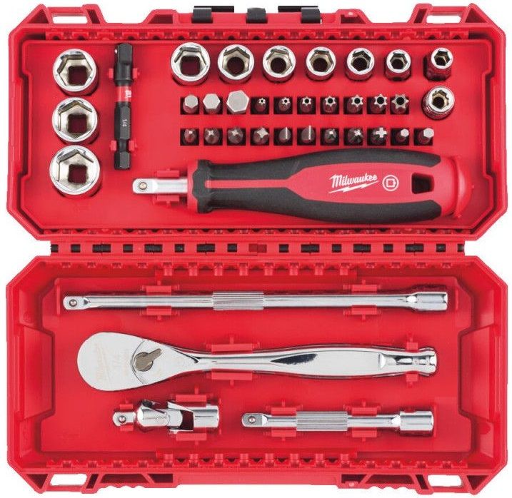 Набір торцевих головок та біт Milwaukee, 1/4", з тріскачкою, 38шт