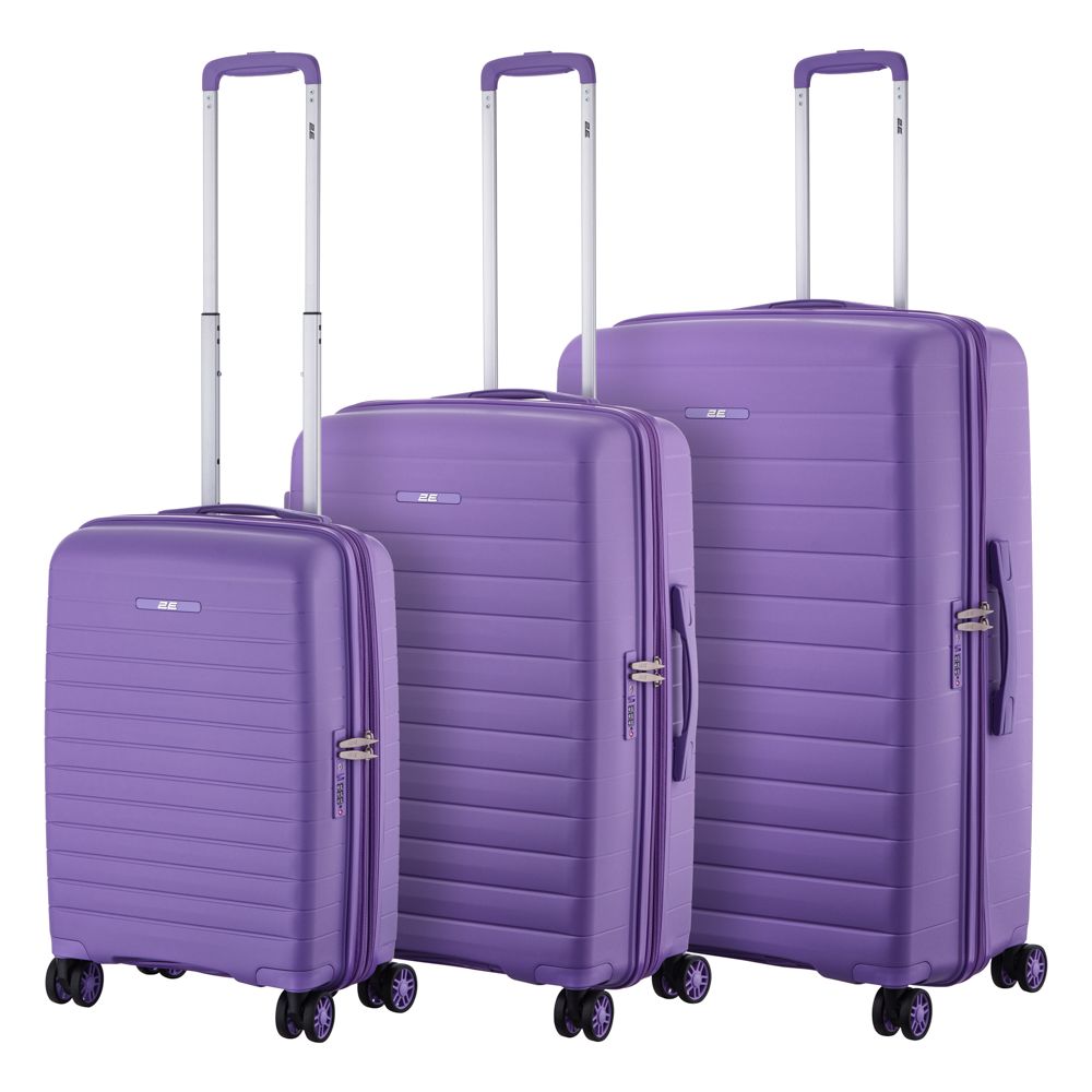 Набір валіз 2E, Aero, поліпропілен, (L+M+S), TSA, 4 колеса, EXP, лавандовий