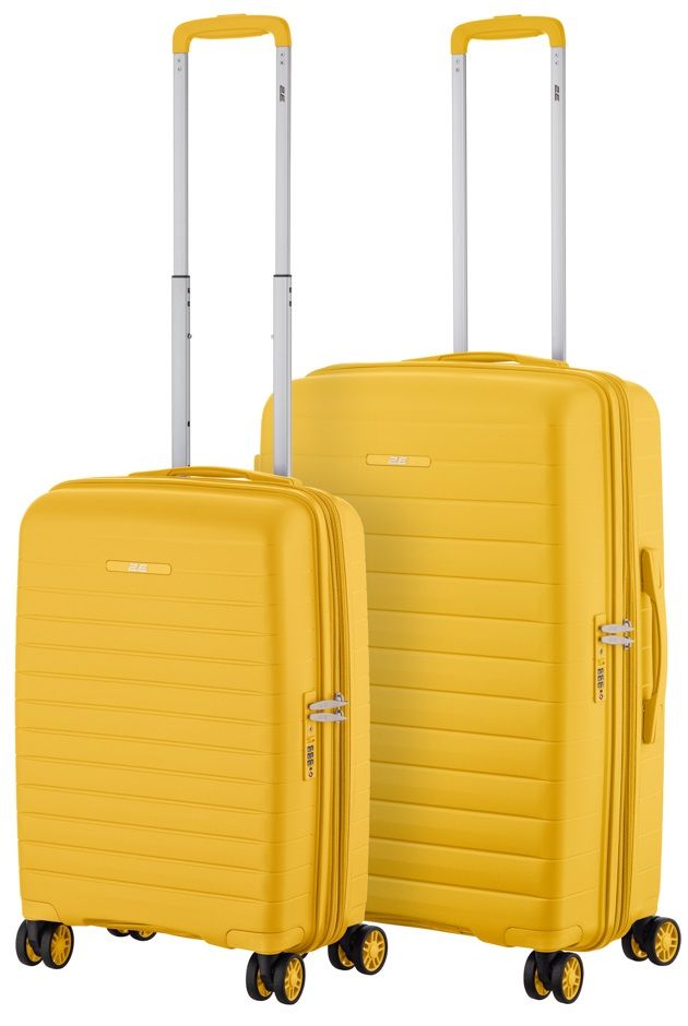 Набір валіз 2E, Aero, поліпропілен, (M+S), TSA, 4 колеса, EXP, бурштиново-жовтий