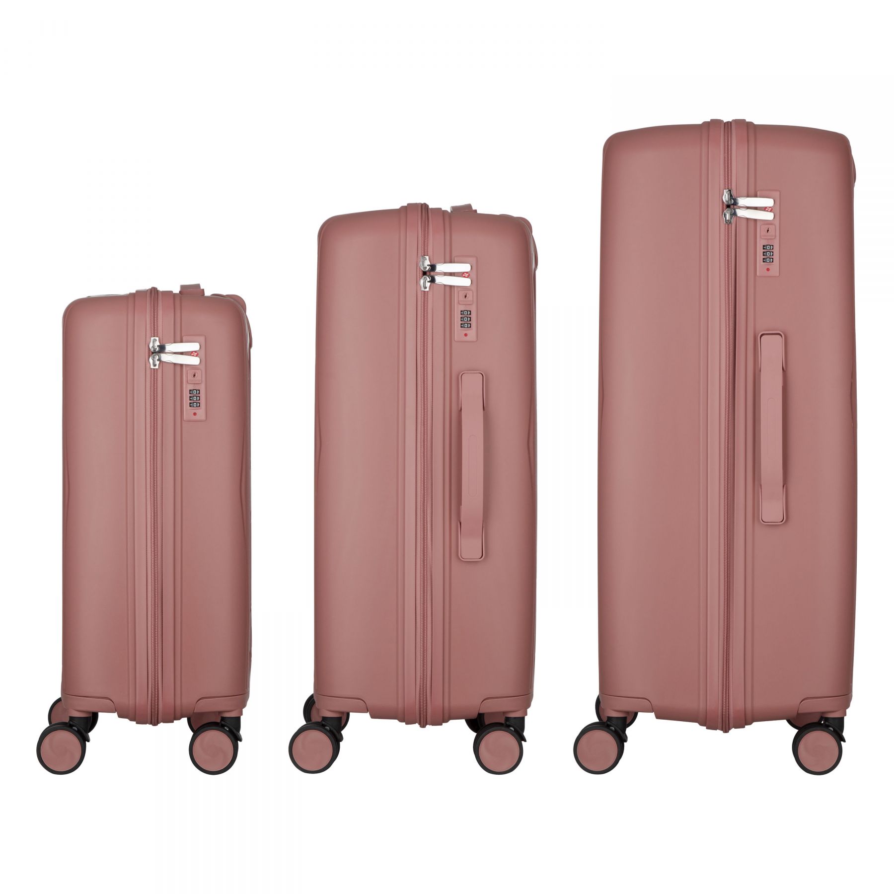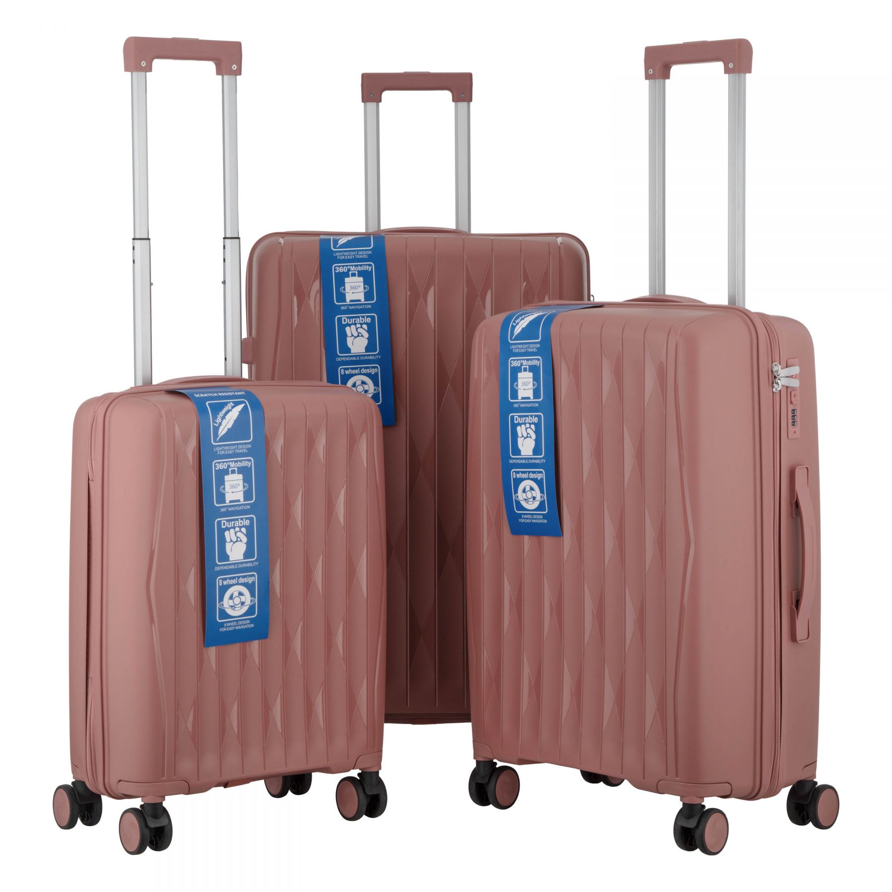 Набір валіз 2E, M7979, поліпропілен, (L+M+S), блискавка anti theft, 4 колеса, кодовий замок, рожево-золотий