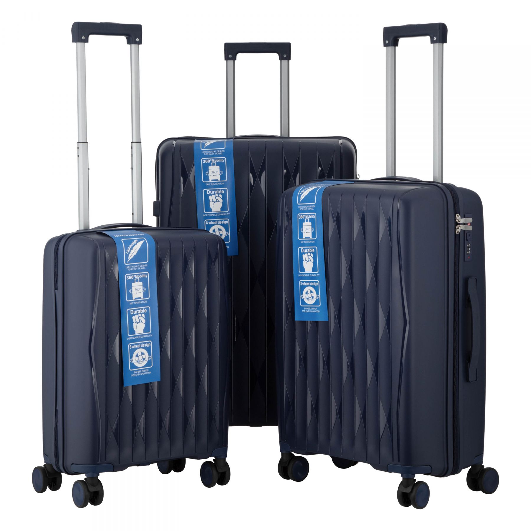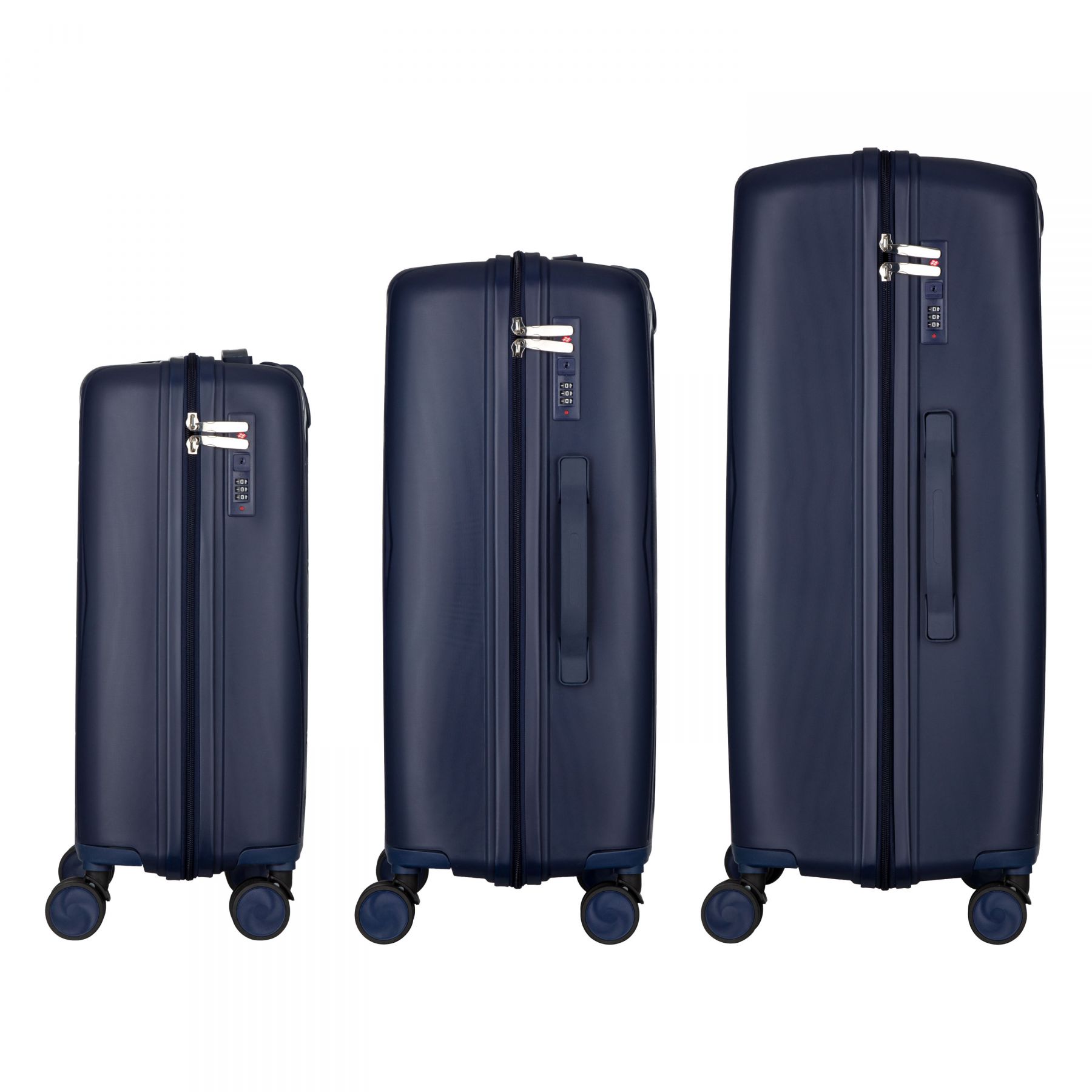 Набір валіз 2E, M7979, поліпропілен, (L+M+S), блискавка anti theft, 4 колеса, кодовий замок, темно-синій