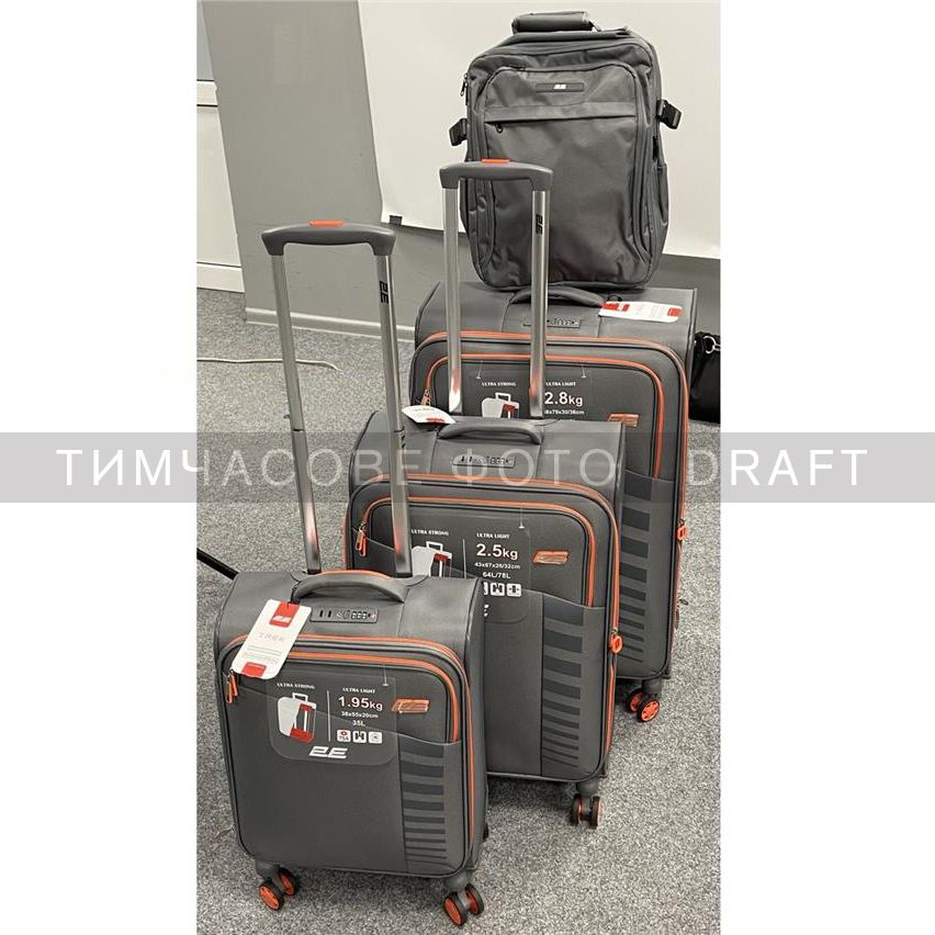 Набір валіз 2E, Trek, (L+M+S), TSA, 4 колеса, + 3 рюкзаки Cabin (2E-BPET-CABIN-GR), поліестр, сірий