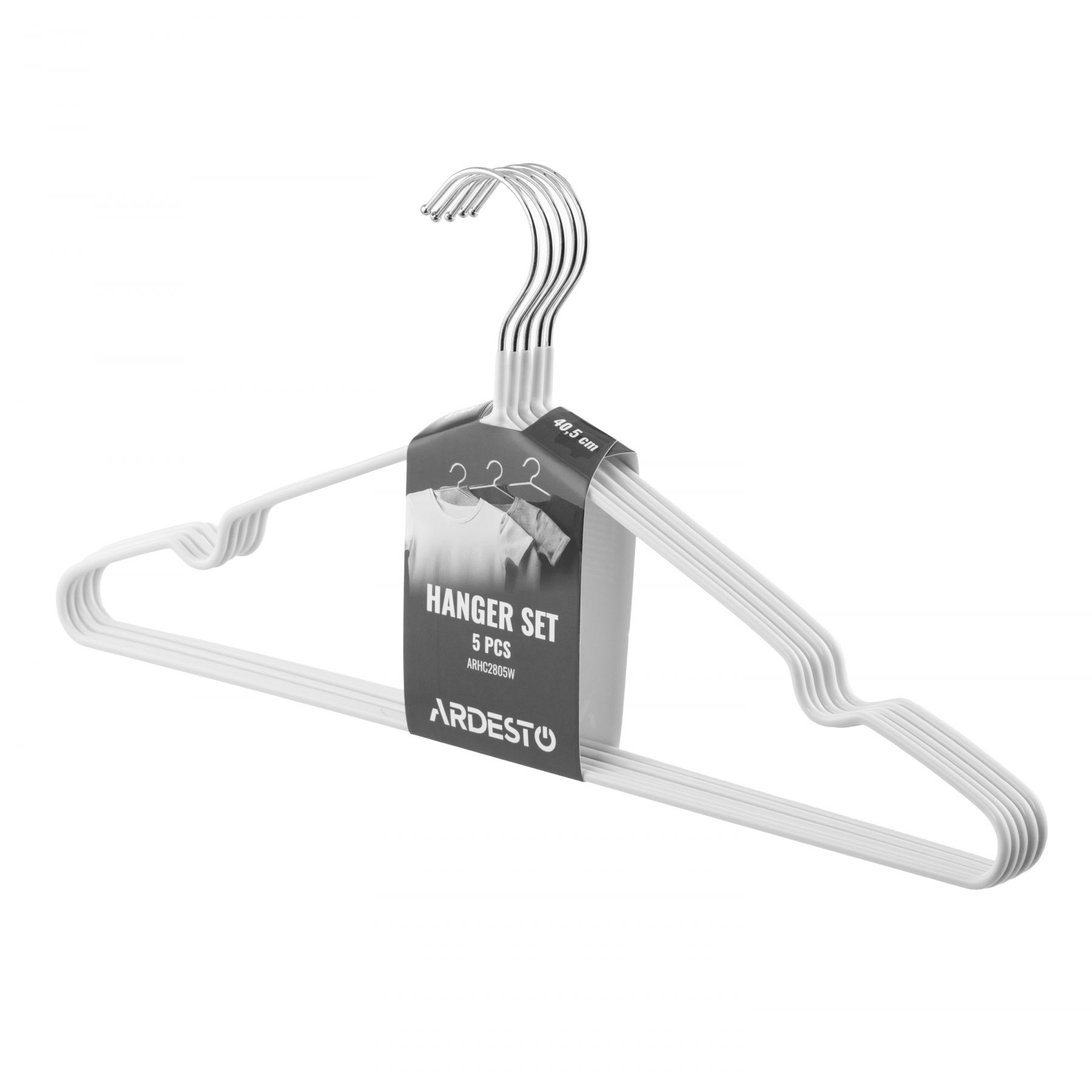 Набір вішаків Ardesto 40.5см, 5шт, метал, ПВХ, білий