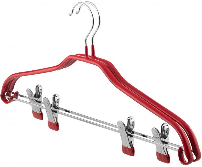 Вішаки з прищіпками – важливий аксесуар для тих, хто турбується про охайне зберігання речей. Тремпелі ARDESTO виготовлено з металу та ПВХ, зумовлюючи міцність і довговічність експлуатації. Вішаки є багатофункціональними, адже на них можна зафіксувати спідницю чи штани, завдяки прищіпкам, які забезпечують делікатне затискання. Міцний гачок тремпеля обертається на 360°. Розмір вішака становить 42 × 21,5 см. У наборі два тремпелі червоного кольору. Завдяки спеціально адаптованій конструкції вішаки ARDESTO допоможуть підтримувати одяг у належному стані.