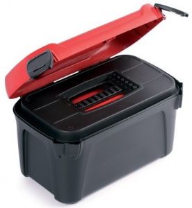 Практичний набір, що включає два ящики для інструментів – KSM32 (13") та KSM40 (15"). Обидва виготовлені з високоміцних полімерів, оснащені ергономічними ручками, лотками для інструментів та міцними клямками з АБС-пластику. Менший ящик легко поміщається у великий. Вантажопідйомність – 6 кг і 8,5 кг відповідно.