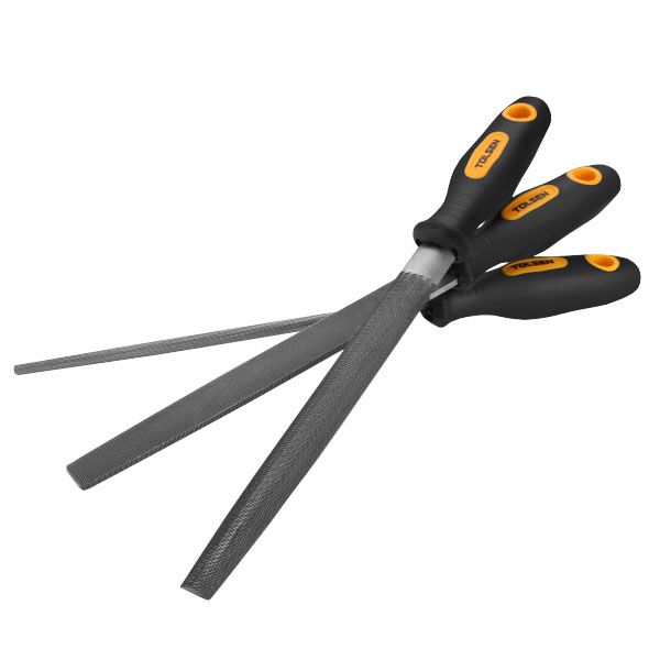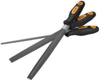 В комплект входять 3 напилка для слюсарних робіт: з плоским, круглим, напівкруглим профілем. Ручний абразивний інструмент підходить для обробки як твердих матеріалів (металу), так і м'яких (дерева, пластмаси та ін.).