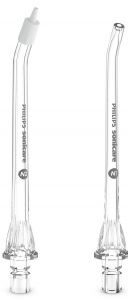 Насадки Philips Sonicare HX3072/00 Compact Flosser 1000 створені для щоденного догляду за ротовою порожниною. У комплект входять стандартна та комфортна насадки, які забезпечують ефективне й делікатне очищення міжзубних проміжків. Виготовлені з міцного прозорого пластику, вони сумісні з портативним іригатором Philips Compact Flosser 1000 і легко встановлюються.