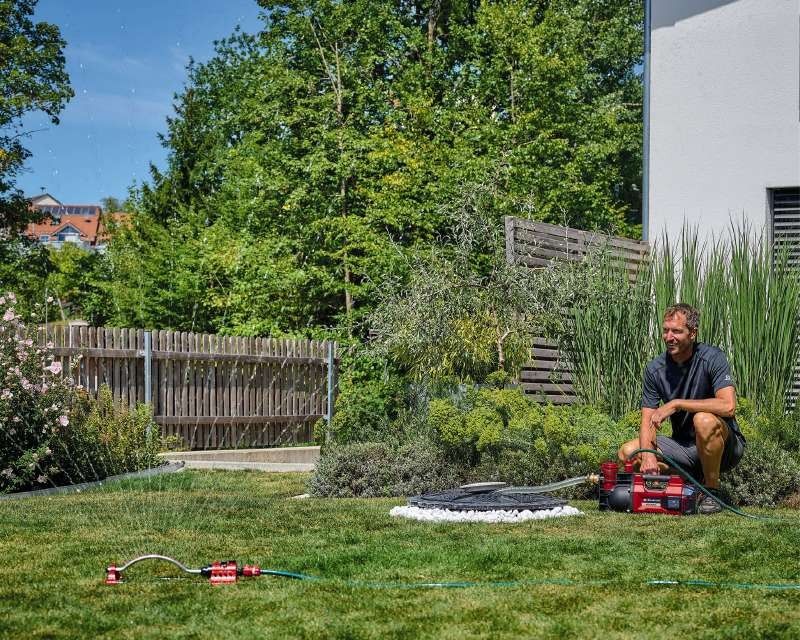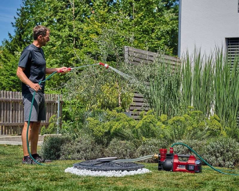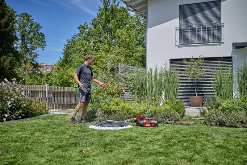 Садовий самовсмоктувальний насос акумуляторний Einhell AQUINNA 36/38 F LED лінійки Power X-Change system серії Expert plus призначений для догляду за садом, має високу продуктивність, особливо добре підходить для зрошення, поливу саду або подачі води з резервуарів.