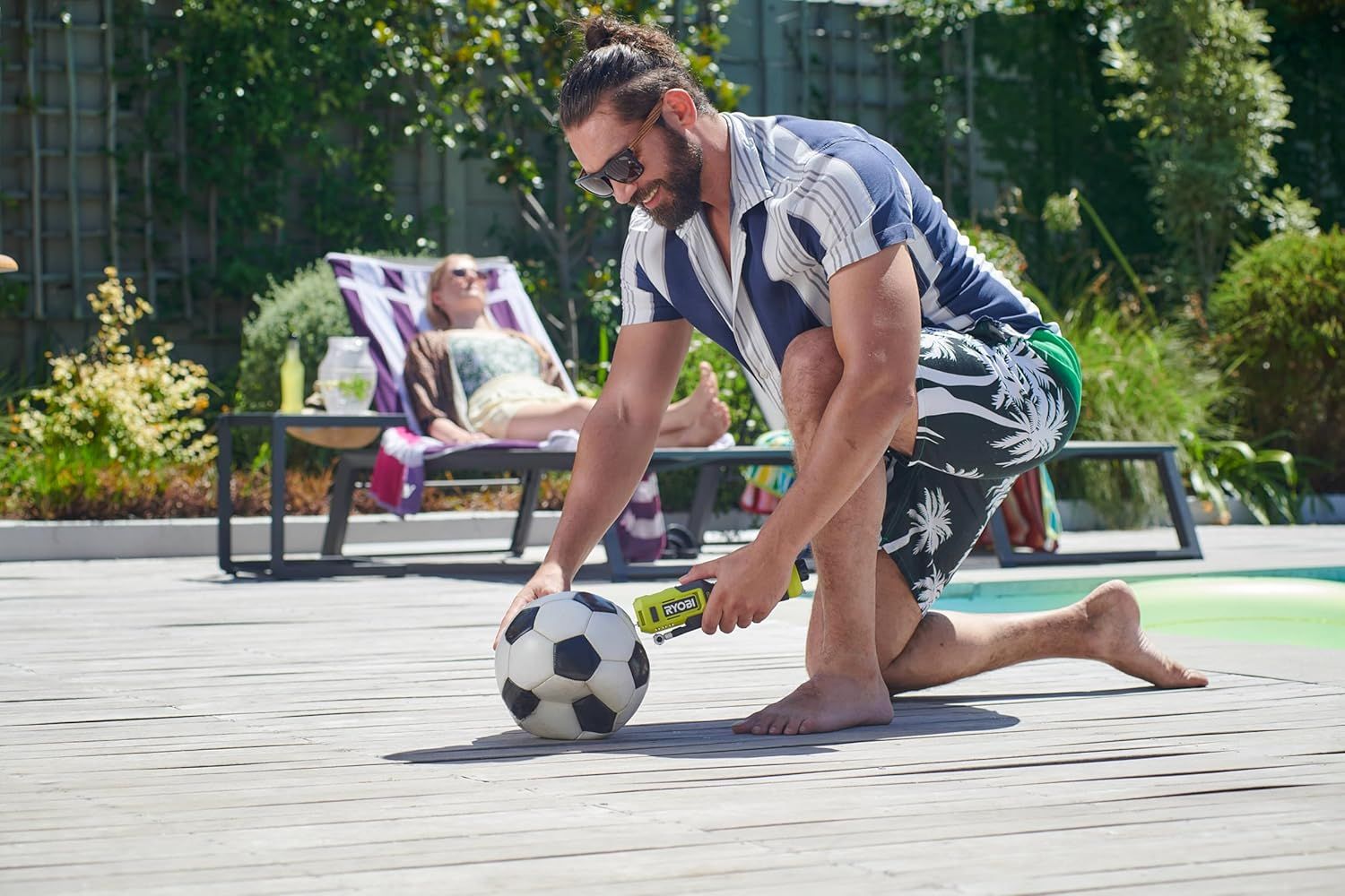 Компактна конструкція насоса дозволяє легко накачувати велосипедні шини або спортивні м'ячі, де б ви не знаходилися. Цей універсальний насос із живленням від акумулятора Ryobi серії USB Lithium 4В. РК-дисплей з підсвічуванням показує тиск під час накачування і може легко перемикатися між одиницями вимірювання PSI та BAR. Дозволяє накачати до 6.9 Бар простим натисканням кнопки.