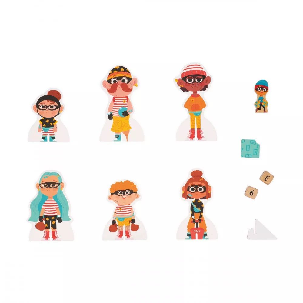 Потрібні проникливі детективи, щоб допомогти викрити підозрюваного, який намагається пограбувати банк! Поодинці або в команді (до 4 гравців) зберіть якомога більше підказок, перш ніж головорізу вдасться захопити здобич! Ця дерев'яна розвиваюча гра весела і обов'язково зацікавить мислення, спостережливість і логічні здібності дітей віком від 5 років. Він також знайомить малюків з принципом роботи дошки подвійного запису.