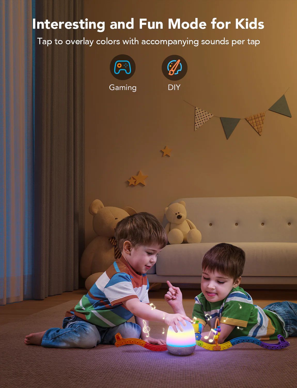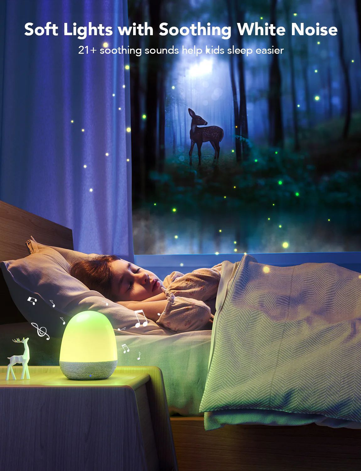 Допоможіть своєму немовляті, малюку або маленькій дитині заснути швидше та міцніше з цим нічником. Це заспокійливе світло ідеально підходить для спалень і дитячих кімнат завдяки батареї, що перезаряджається, і різноманітній бібліотеці білих шумів.
