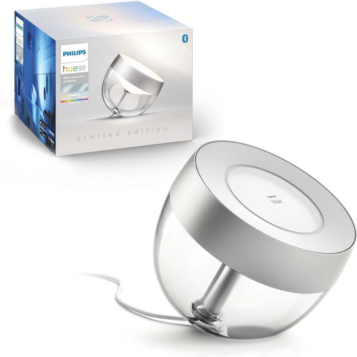 Створіть настрій в будь-якій кімнаті вашого будинку зі стильним світильником Philips Hue Iris срібного кольору. Завдяки світлу, який одночасно розфарбовує стіну і забезпечує м'яке підсвічування, світильник Iris створює вишуканий і унікальний ефект. Додайте блок управління Hue Bridge, щоб скористатися повним набором функцій розумного освітлення