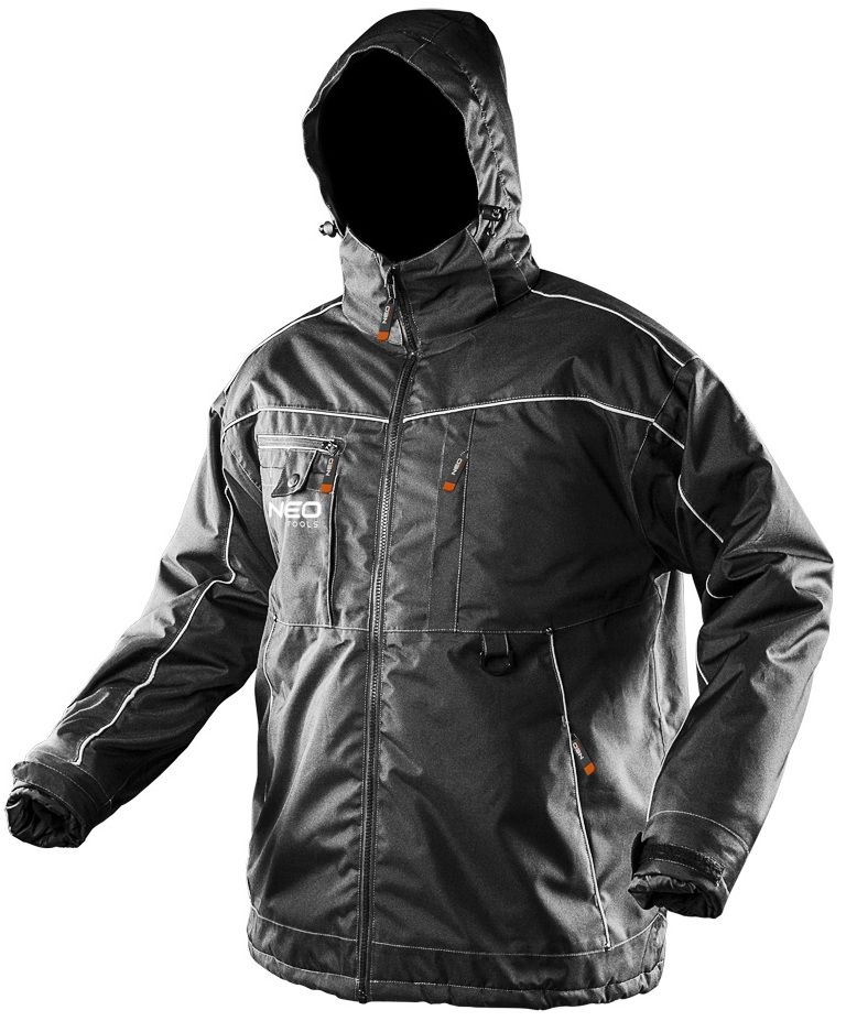 Робоча зимова куртка NEO TOOLS (арт. 81-570-M) вітронепроникна і водонепроникна. Дуже тепла, і в той же час легка і міцна, завдяки використаним матеріалам. Не сковує рух. Має регульований капюшон, який знiмається, а також високий комiр, що захищає шию. Рукава на гумках з регульованими шнурами, є додаткові внутрішні манжети, що захищають від проникнення вітру або дощу. Нижня частина куртки на гумці з інтегрованими регульованими шнурами, що дозволяють зберігати тепло при максимальній експлуатації. Куртка має багато зручних кишень, в тому числі кишеню для смартфона, розмір якого збільшений в порівнянні з попередніми моделями. Завдяки внутрішньому кишені і багатофункціонального кріпленню, найнеобхідніші предмети можна завжди мати при собі. Світлоповертаючі елементи забезпечують краще візуальне позначення користувача. Гарантією якості є європейський сертифікат CE, а також виконання відповідно до вимог стандарту EN ISO 13688 діє до: 2013. Бренд NEO TOOLS виправдовує очікування професіоналів.