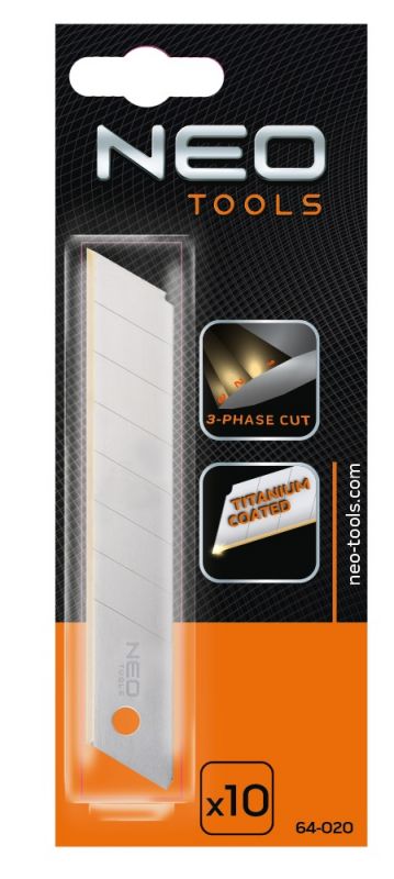 Лезо сегментоване Neo Tools, 18мм, товщина 0.5мм, край з титановим покриттям, 10шт.