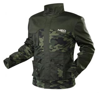 Куртка робоча NEO CAMO, розмір XL (54), 255 г/м2, високий комір, регулювання манжет, комбіновані багатофункціональні кишені на блискавці та липучках, камуфляжна