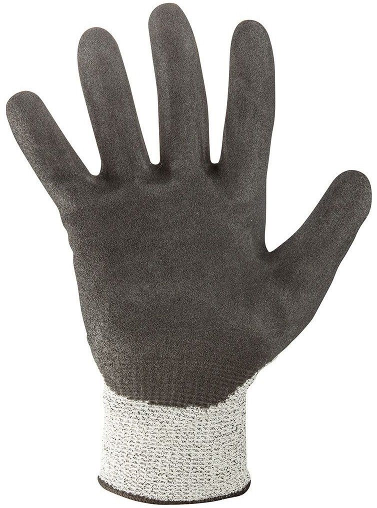 Рукавички з нітриловим покриттям проти порізів, 4X43D, розмір 10, основний матеріал: стійкий до порізів поліефірний трикотаж, покриття: нітрил, що пройшов піскоструминну обробку, стійкість до стирання (від 0 до 4) 4, поріз гострим предметом X (не застосовується), опір розриву (від 0 до 4) 4, опір проколу (від 0 до 4) 3, опір порізам згідно EN ISO 13997 D, гарне прилягання до руки, застосування: всі транспортні роботи, вантажно-розвантажувальні роботи, зберігання, зберігання, робота зі склом , листовим металом, робота складання, виготовлення дрібних елементів, DIY, автомобілебудування, садівництво, сертифікат CE на відповідність EN 390