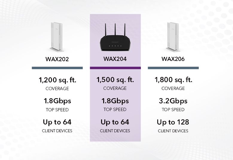 Дводіапазонна точка доступу NETGEAR WAX204 WiFi 6 AX1800 стане універсальним рішенням для домашнього офісу і малого бізнесу. Підвищіть продуктивність за допомогою швидкого і надійного WiFi 6.