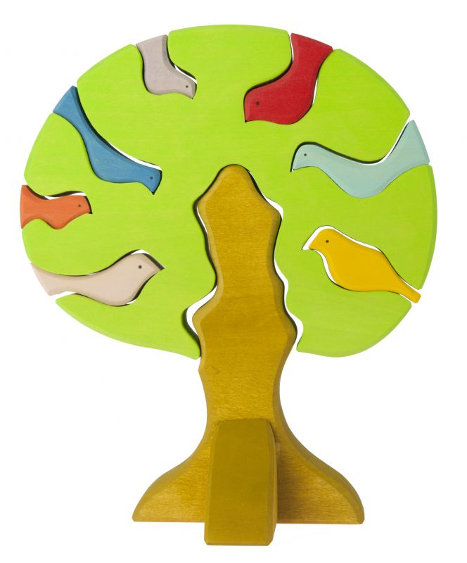 З дерев’яним конструктором німецького виробника іграшок nic дитина навчиться правильно розташовувати пташок на весняному дереві. Пазл у вигляді дерева з кольоровими пташками-вкладишами, кожна з яких має певний розмір і унікальні обриси. Весь набір надійно запакований у прозору поліетиленову плівку. Усі 9 деталей вироблені із натурального дерева, вкритого фарбами на водній основі. Матеріали, використані у виробництві, нетоксичні і безпечні для дитини. Висота дерева складає 23 см.