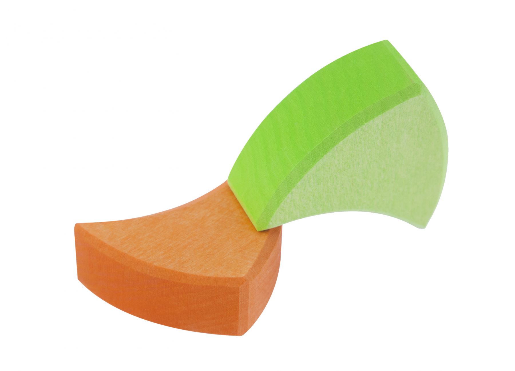 Різнокольорова яскрава зірка оживає завдяки дерев’яному набору німецького виробника іграшок nic. Комплект конструктора щільно стягнутий прозорою поліетиленовою плівкою. До його складу входить 18 деталей та кругла основа натурального кольору. Усі елементи вироблені із екологічного дерева та вкриті яскравими матовими фарбами на водній основі, які підкреслюють структуру дерева та мають бархатний ефект. Різноманіття кольорів обов’язково сподобається дитині: блакитні, зелені, фіолетові, червоні та відтінки помаранчевих – справжній калейдоскоп у руках! Деталі конструктора якісно оброблені, вони не ковзають в руці і до них приємно торкатись.