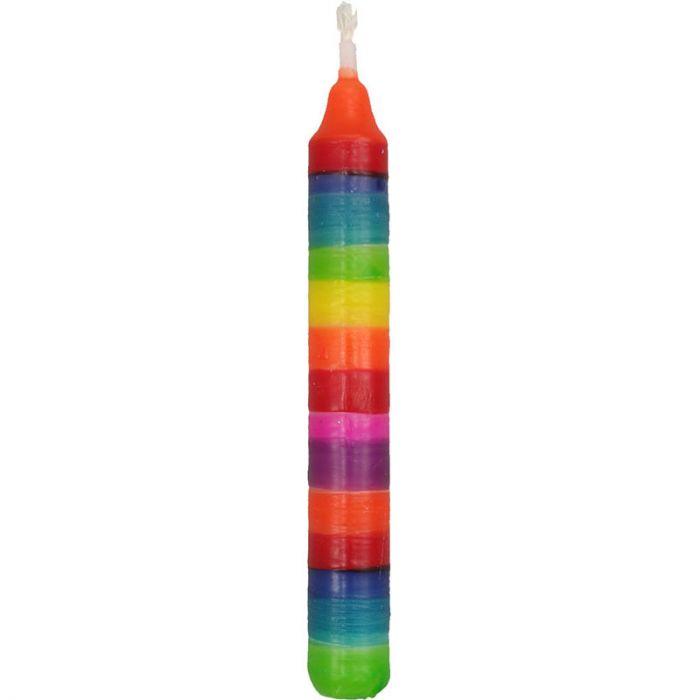 Маленькі дітлахи обожнюють солодощі. Німецький бренд nic створив святкові свічки спеціально до дня народження малюків. Різнокольорова свічка прикрашена барвистими смугами: помаранчевими, блакитними, зеленими і червоними. Аксесуар упакований у прозору плівку. Його висота – 10 см, діаметр – 14 мм, тому він чудово підходить до металевих підсвічників, які разом вставляються у дерев’яні підсвічники nic. Під час горіння свічки не димлять і не коптять.