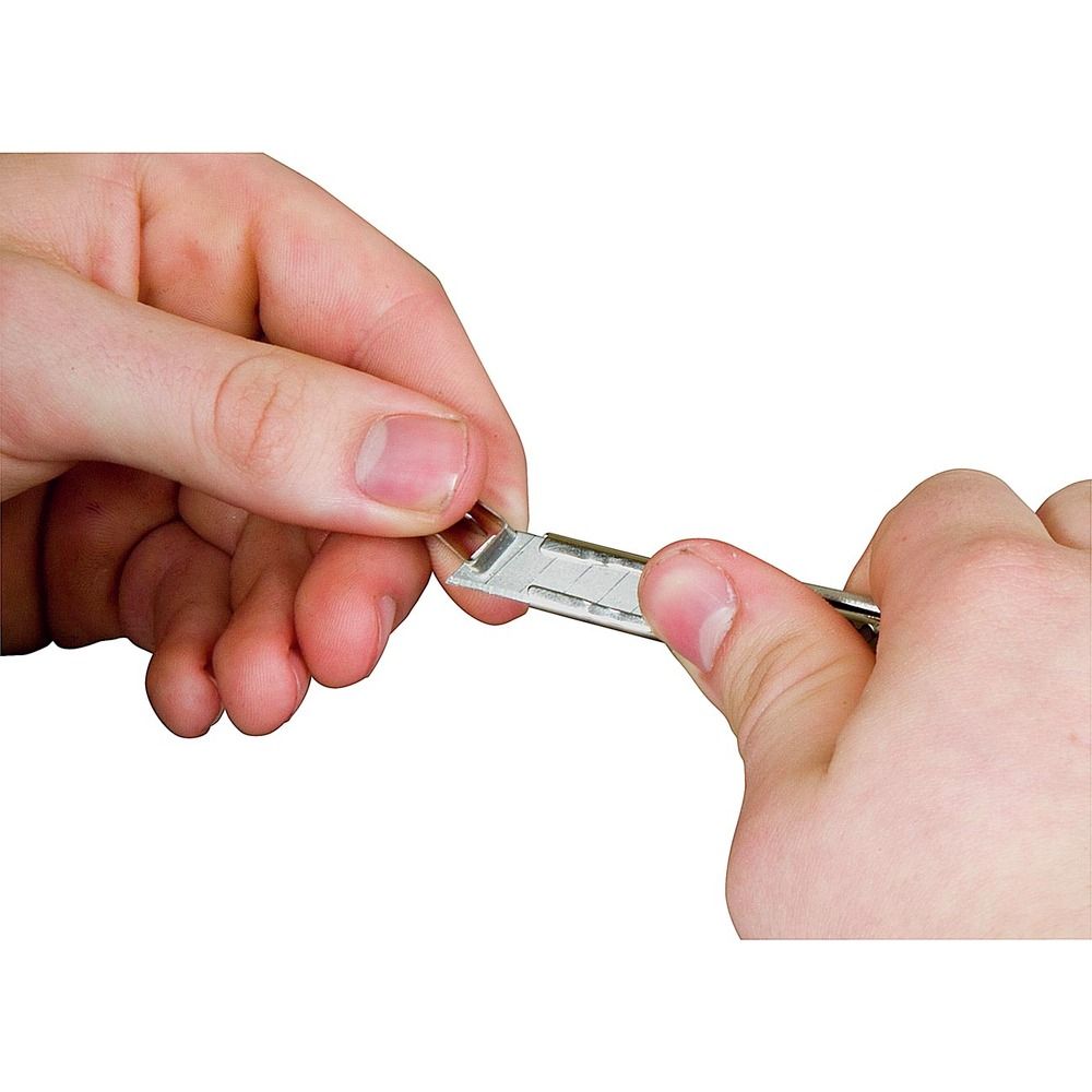 Додатково:з сегментами, що відламуються, блокування леза з використанням гвинта в задній частині корпусу, швидка заміна леза, литий оцинкований корпус, кишеньковий зажим, механізм автоблокування леза, рифлена поверхня корпусу ножа запобігає прослизанню, інтегрований пристрій для відламування сегментів леза, 13 ріжучих кромок